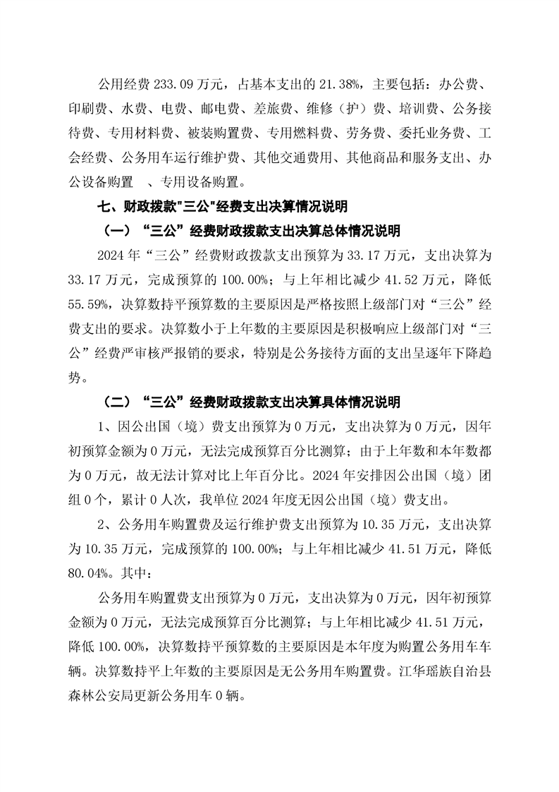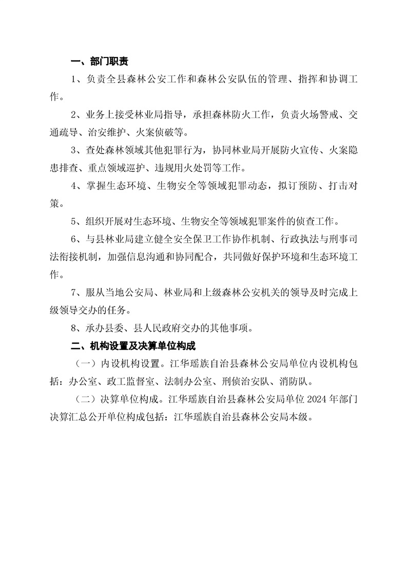 江华瑶族自治县森林公安局2024年度部门整体支出绩效自评报告