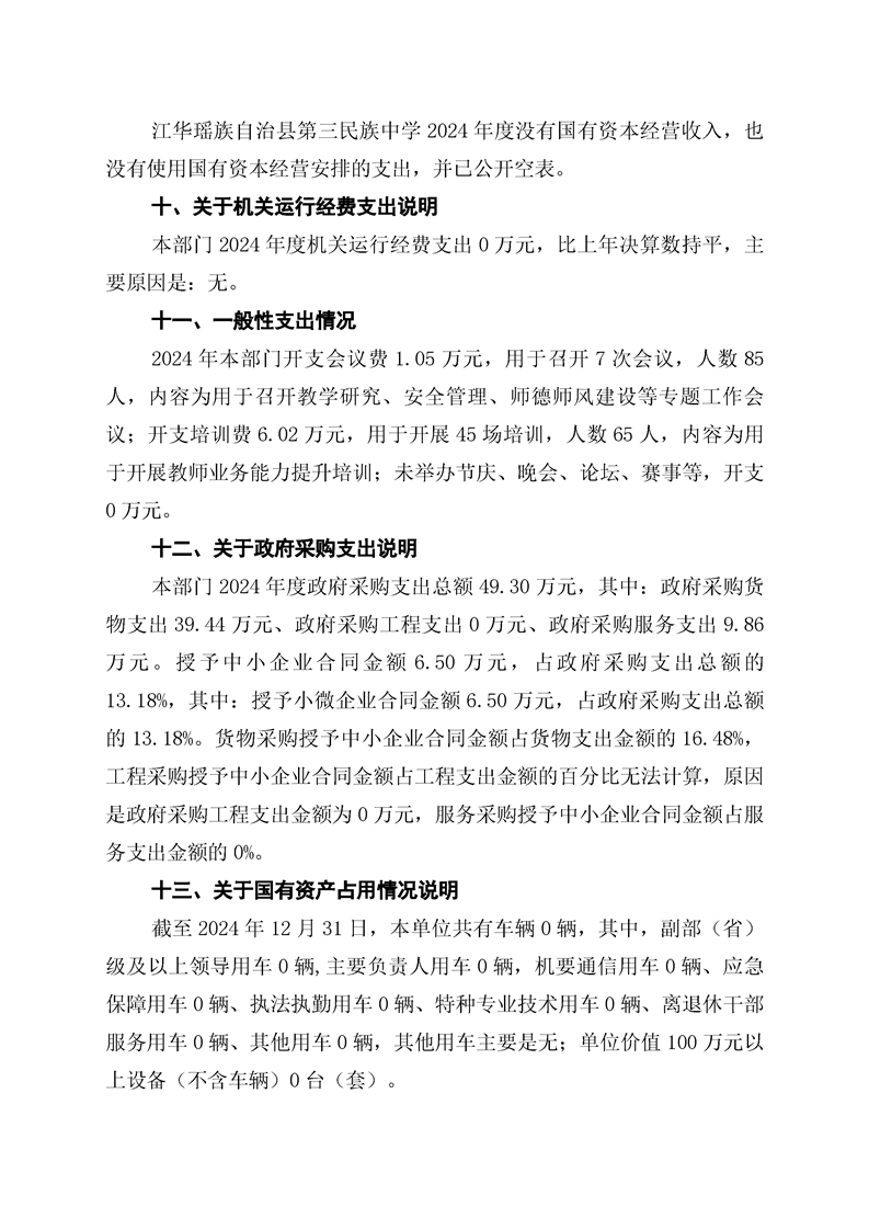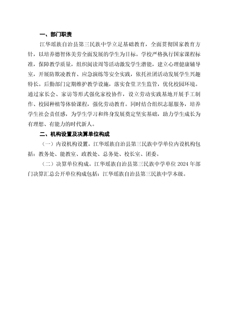 2024年度江华瑶族自治县第三民族中学部门决算