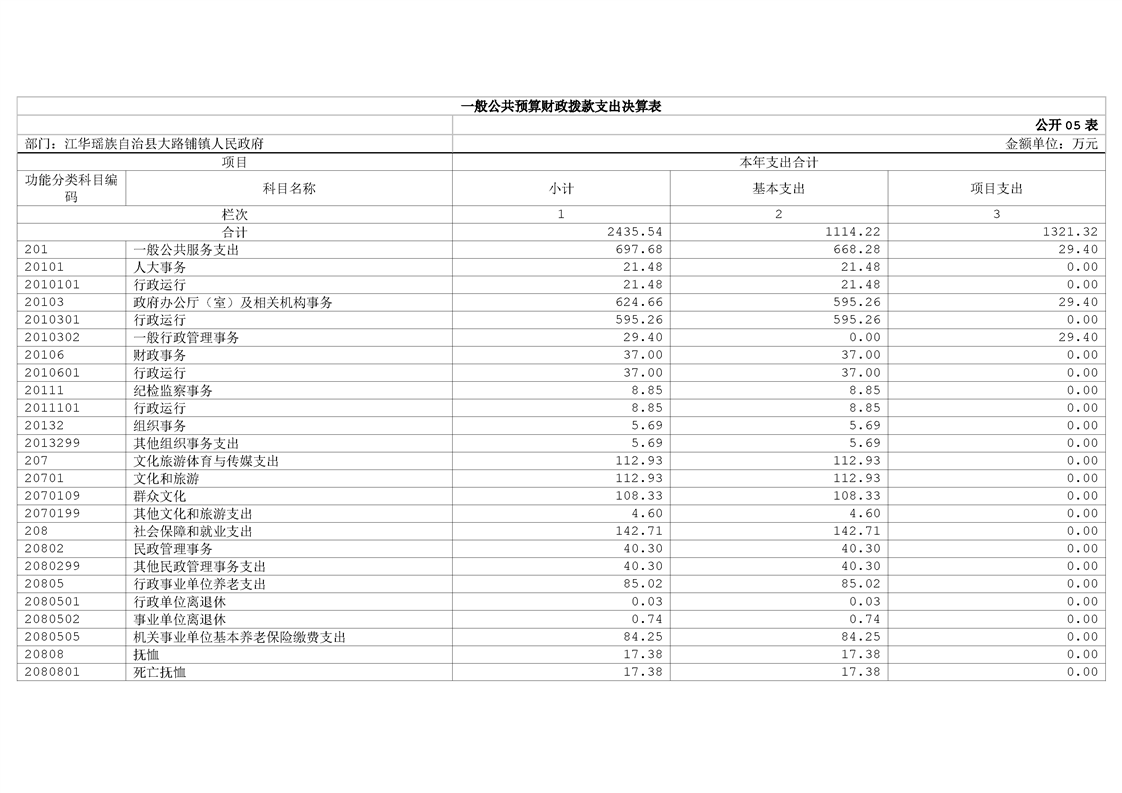 2024年度江华瑶族自治县大路铺镇人民政府部门决算