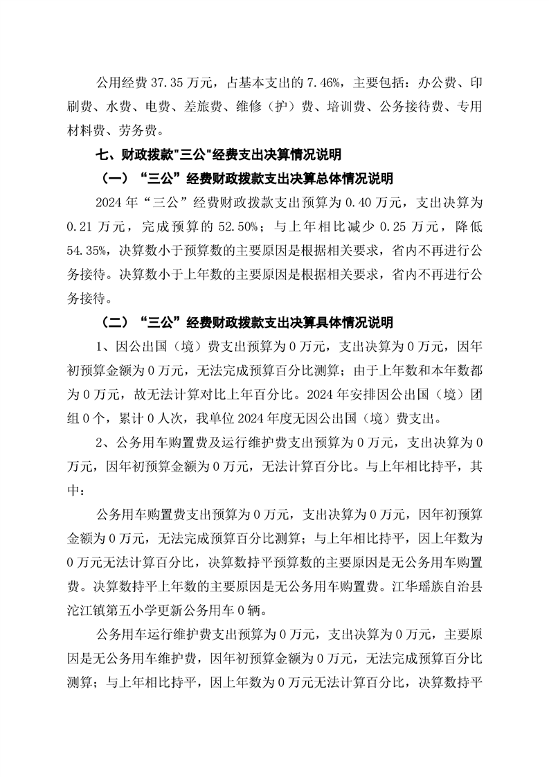 2024年度江华瑶族自治县沱江镇第五小学部门决算