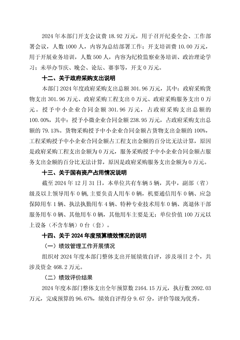 中共江华瑶族自治县纪律检查委员会2024年度部门整体支出绩效自评报告