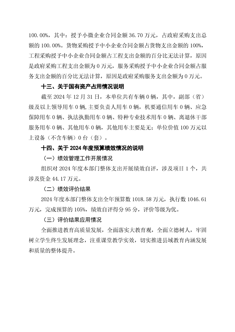 江华瑶族自治县涔天河中学2024年度部门整体支出绩效自评报告