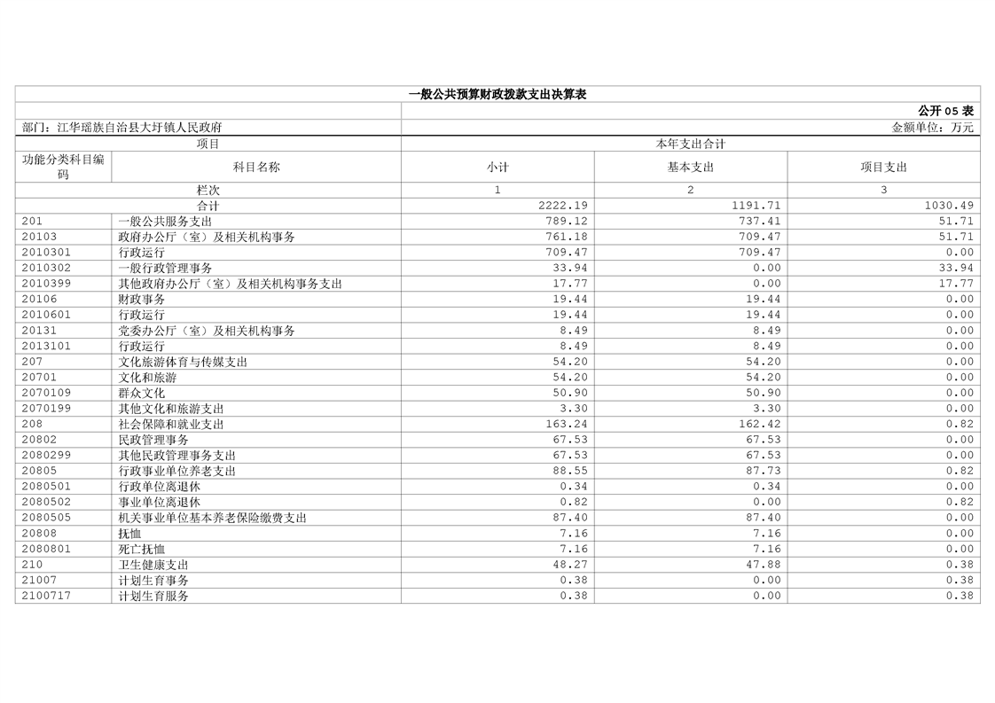 2024年度江华瑶族自治县大圩镇人民政府部门决算
