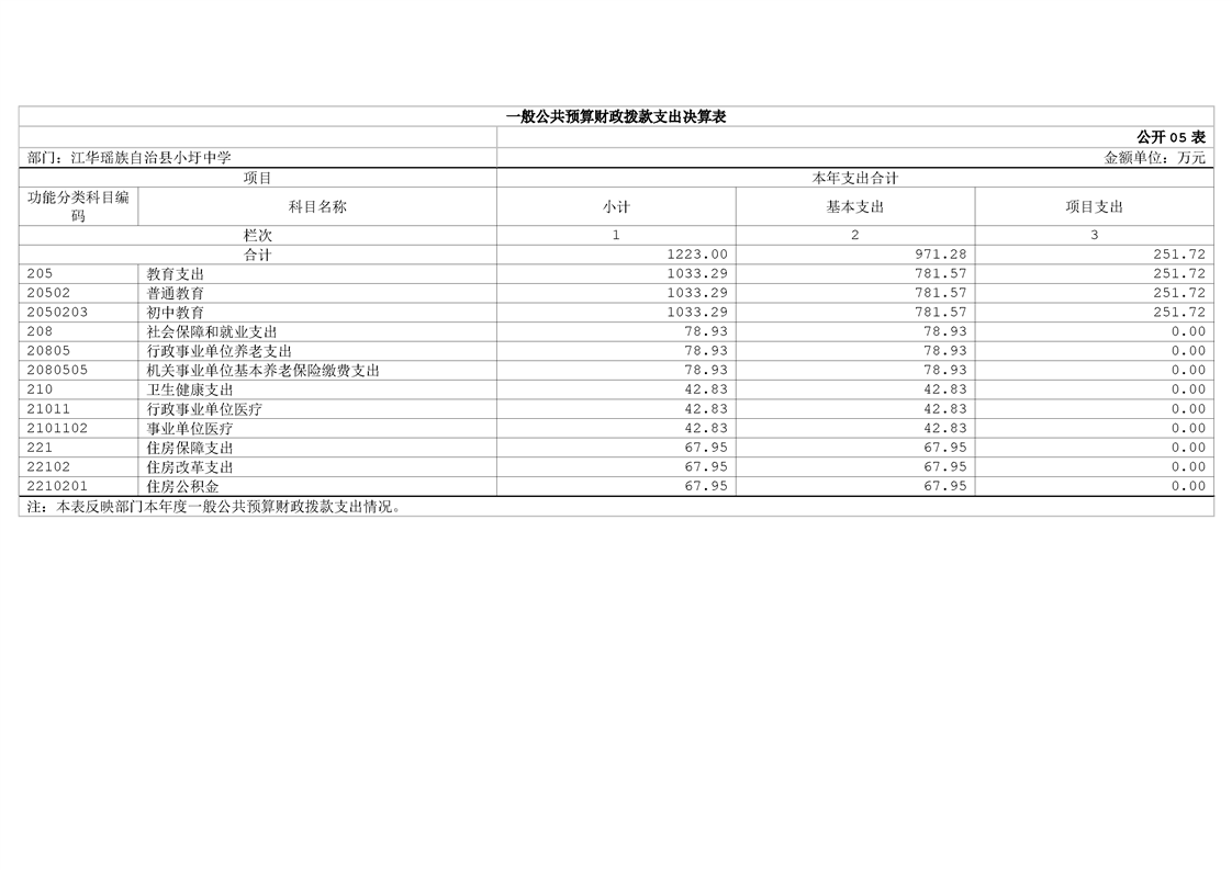 2024年度江华瑶族自治县小圩中学部门决算
