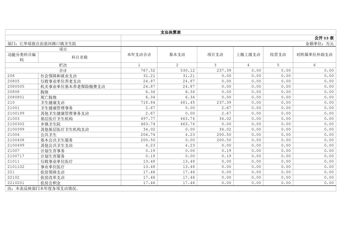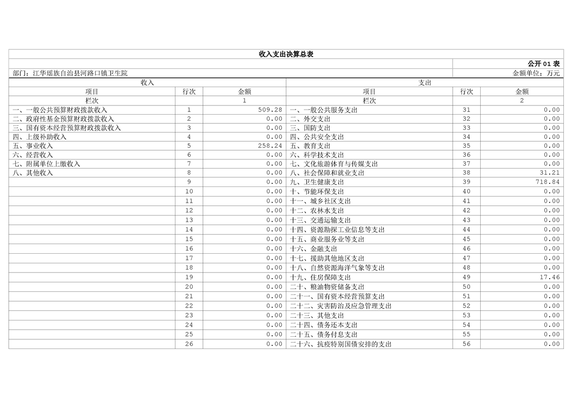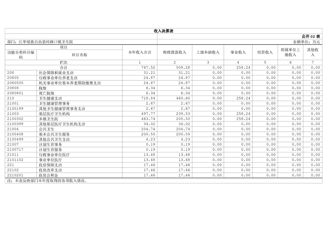 2024年度江华瑶族自治县河路口镇卫生院部门决算