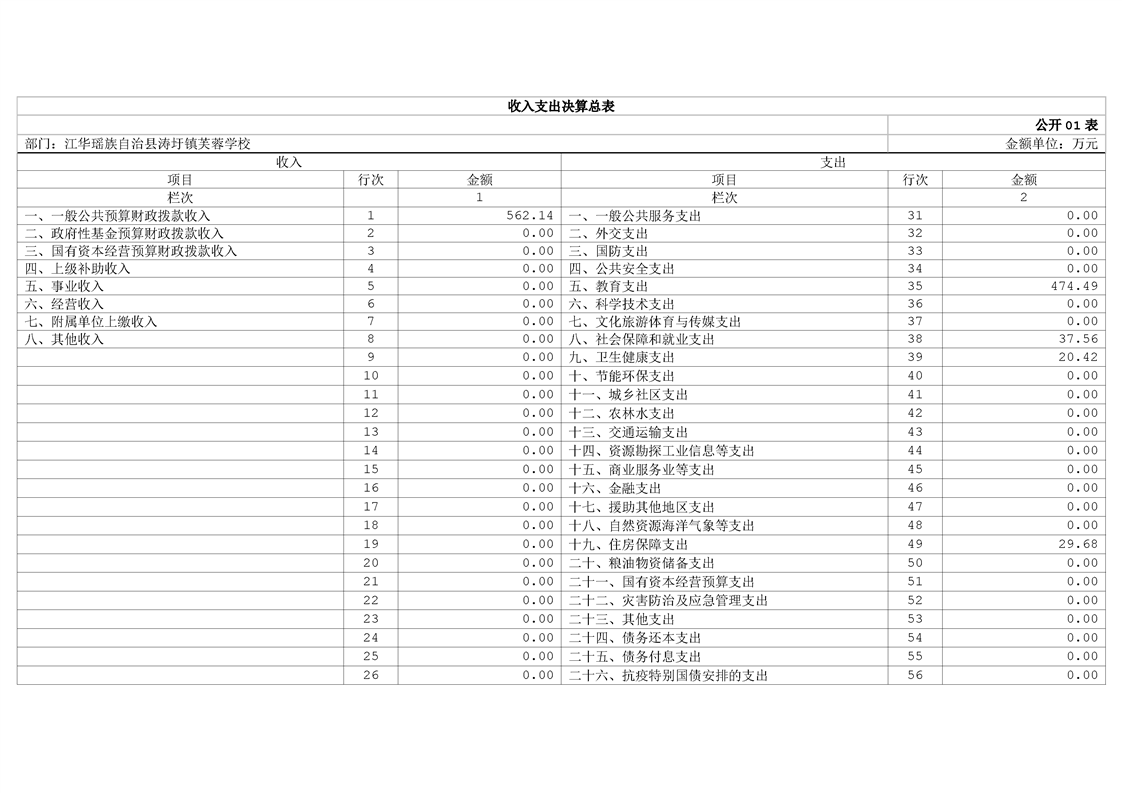 2024年度江华瑶族自治县涛圩镇芙蓉学校部门决算