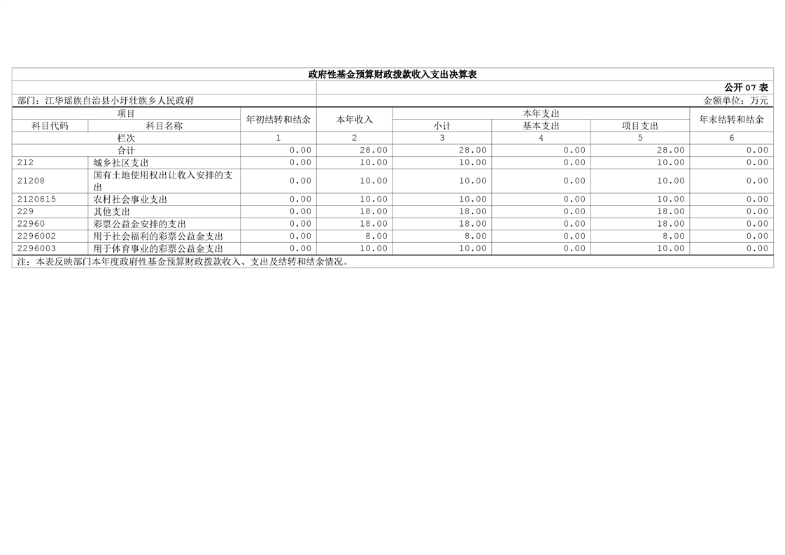2024年度江华瑶族自治县小圩壮族乡人民政府部门决算