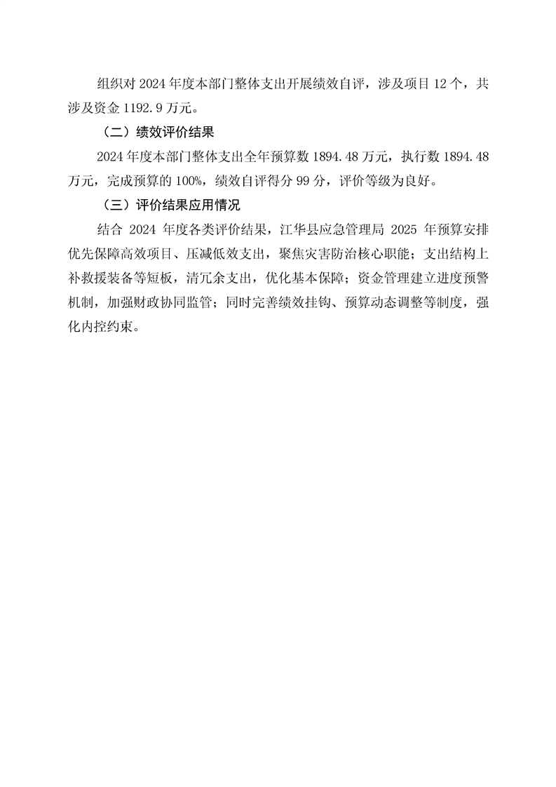 江华瑶族自治县应急管理局2024年度部门整体支出绩效自评报告