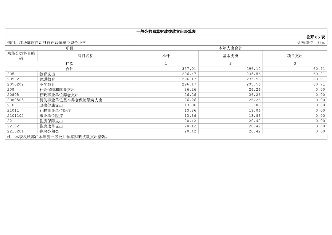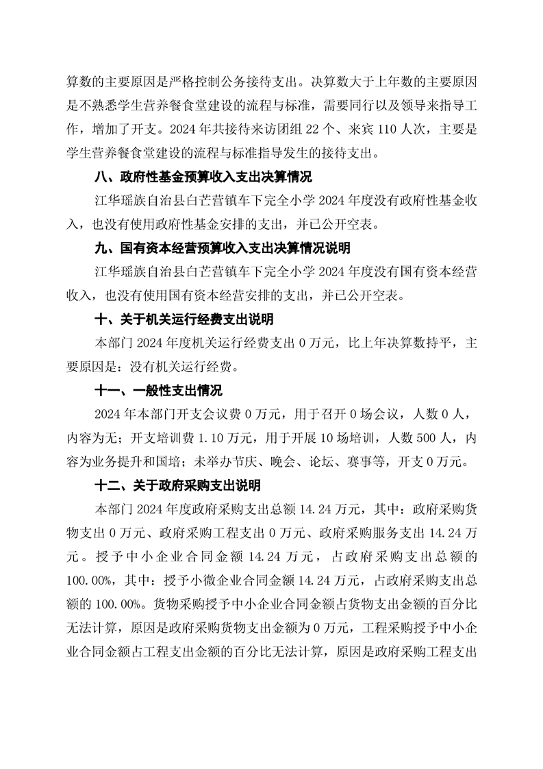 2024年度江华瑶族自治县白芒营镇车下完全小学部门决算