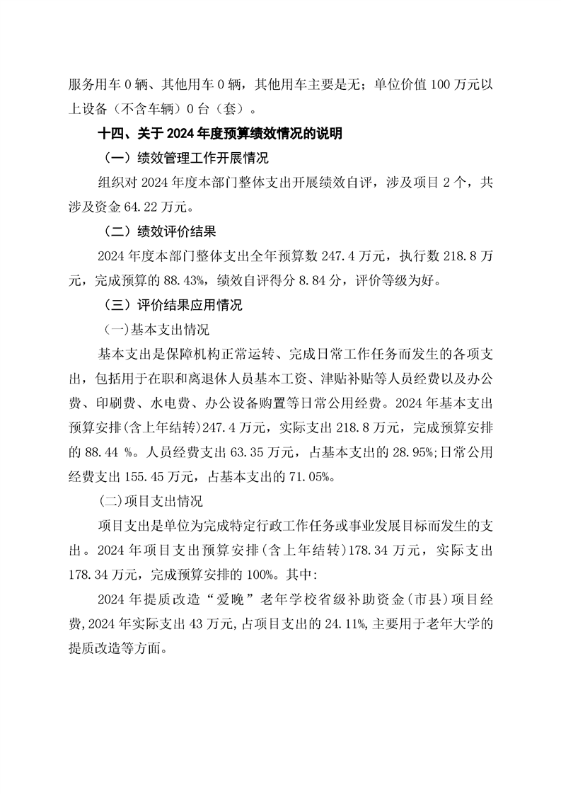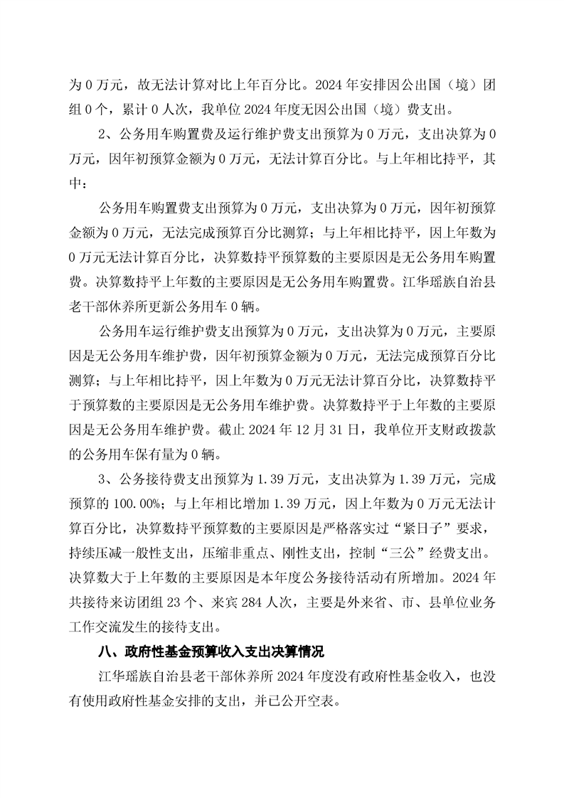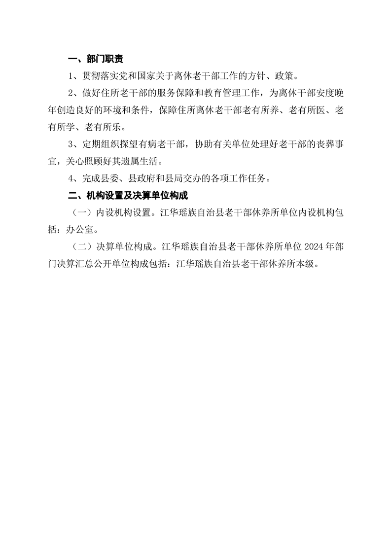 江华瑶族自治县老干部休养所2024年度部门整体支出绩效自评报告
