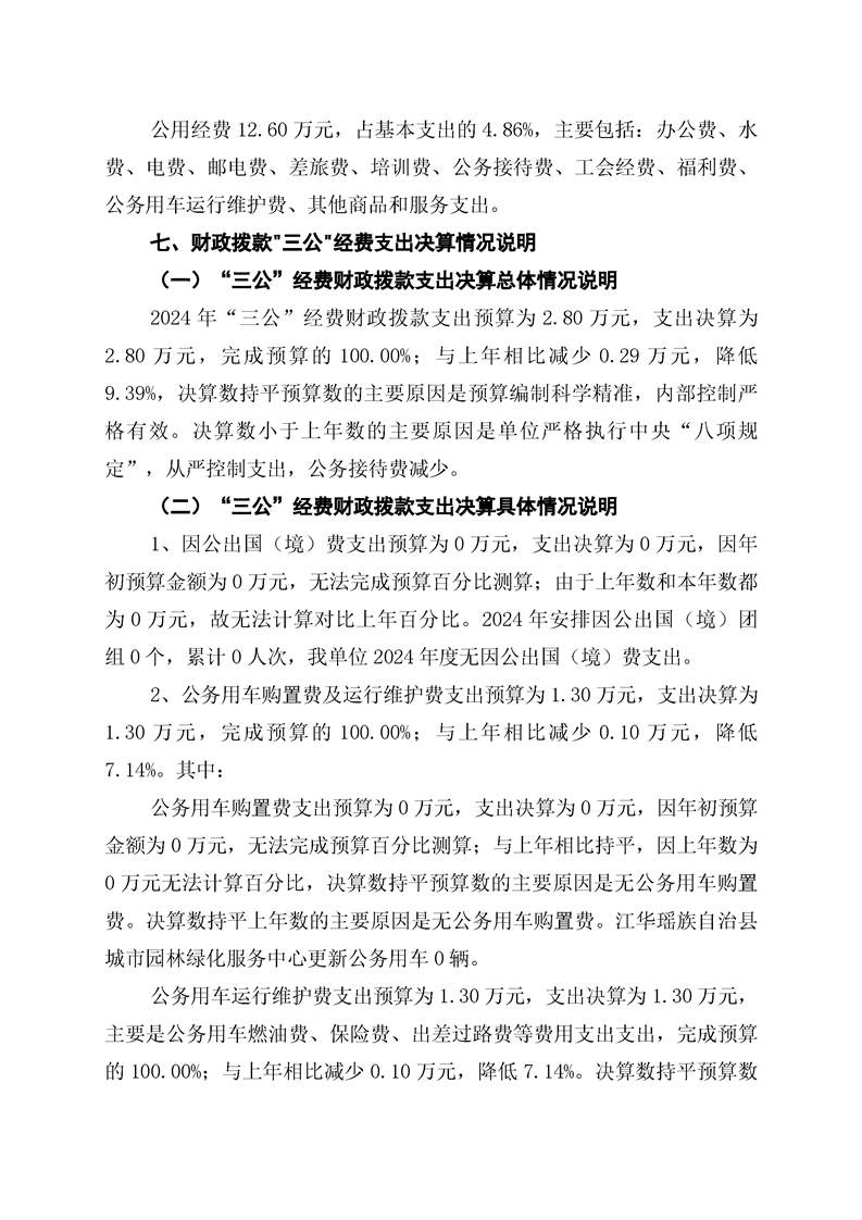 2024年度江华瑶族自治县城市园林绿化服务中心部门决算