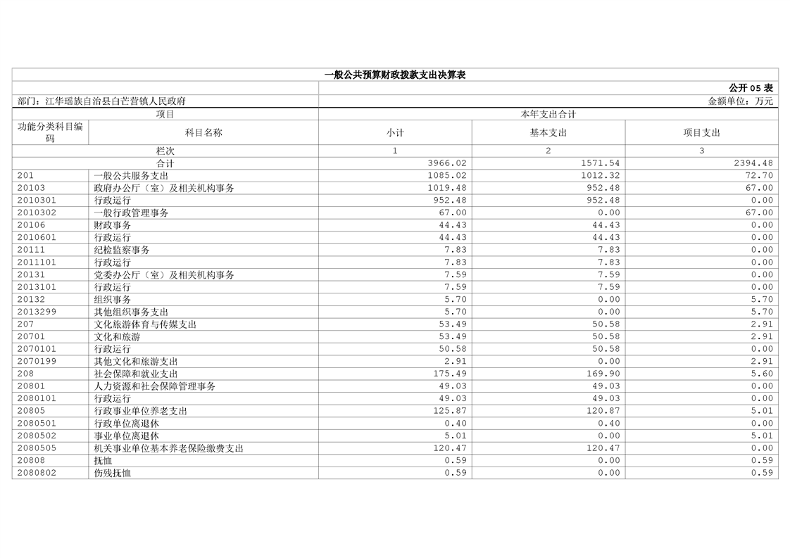 2024年度江华瑶族自治县白芒营镇人民政府部门决算