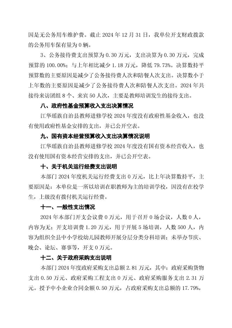 江华瑶族自治县教师进修学校2024年度部门整体支出绩效自评报告