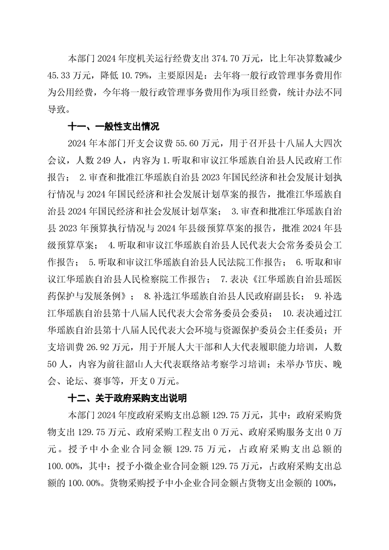 2024年度江华瑶族自治县人民代表大会常务委员会部门决算