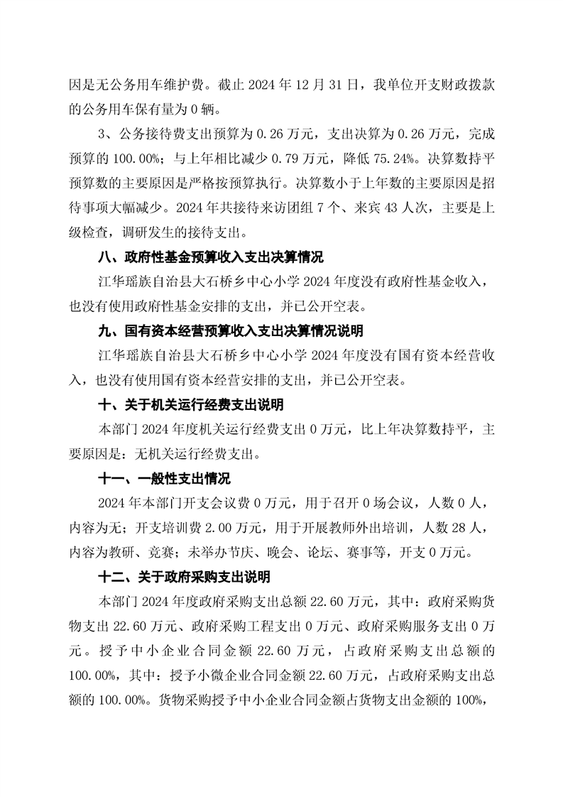 2024年度江华瑶族自治县大石桥乡中心小学部门决算