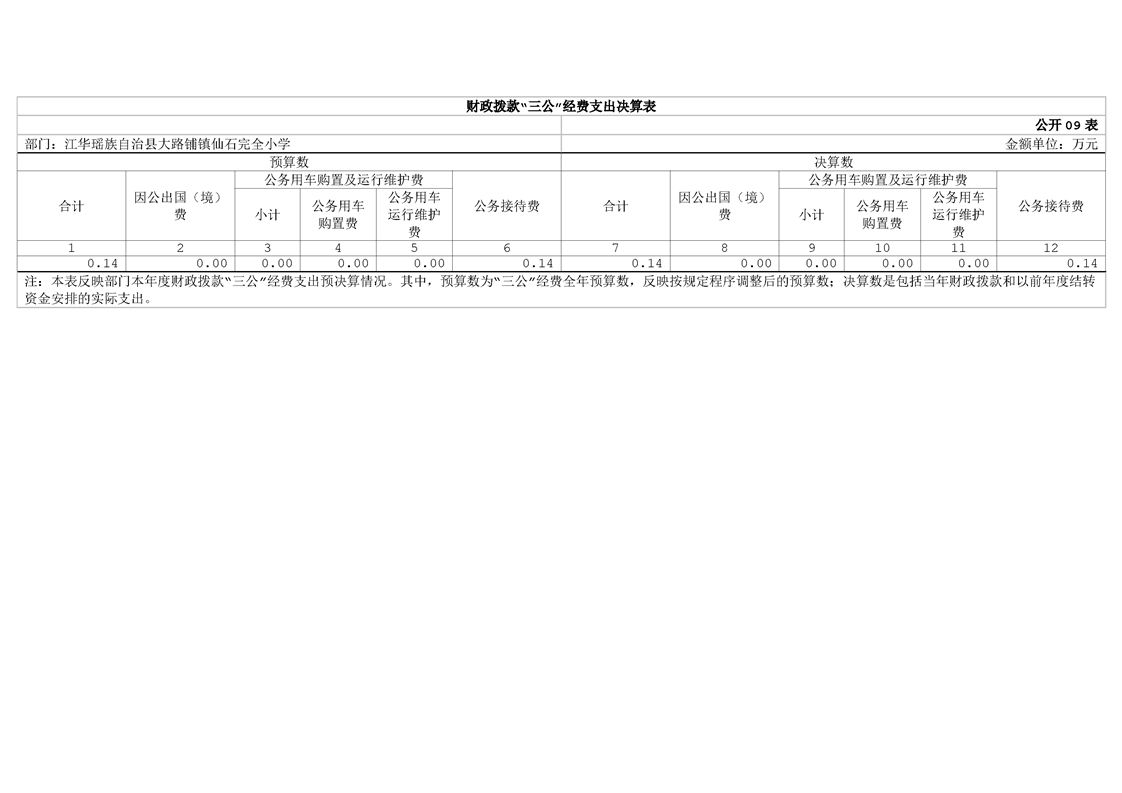 2024年度江华瑶族自治县大路铺镇仙石完全小学部门决算