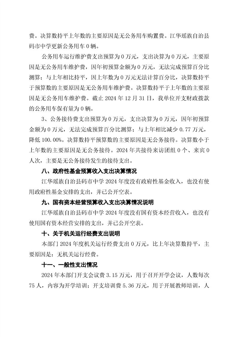 2024年度江华瑶族自治县码市中学部门决算