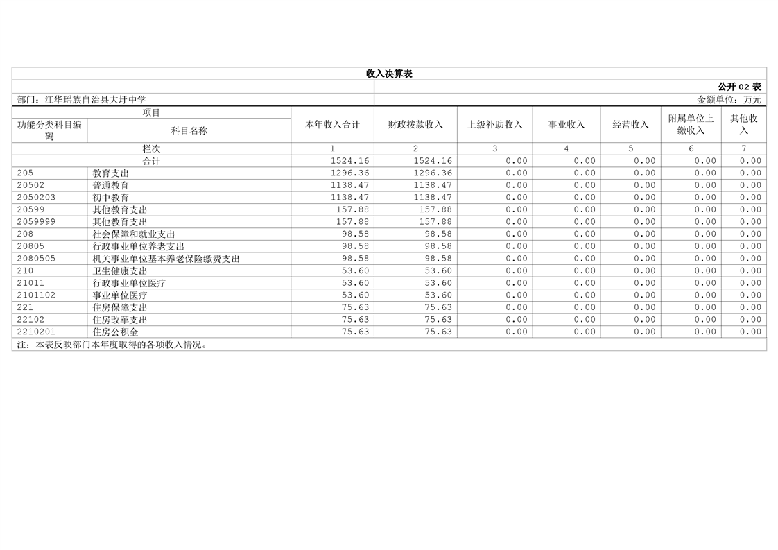 2024年度江华瑶族自治县大圩中学部门决算