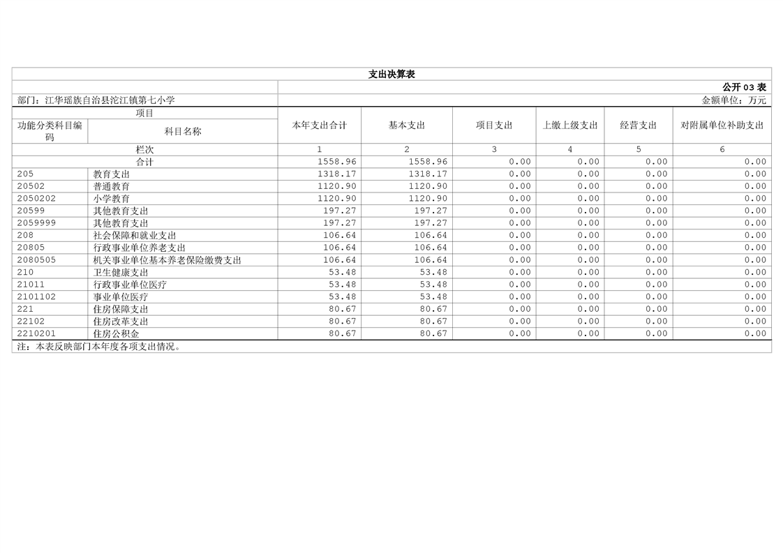 2024年度江华瑶族自治县沱江镇第七小学部门决算