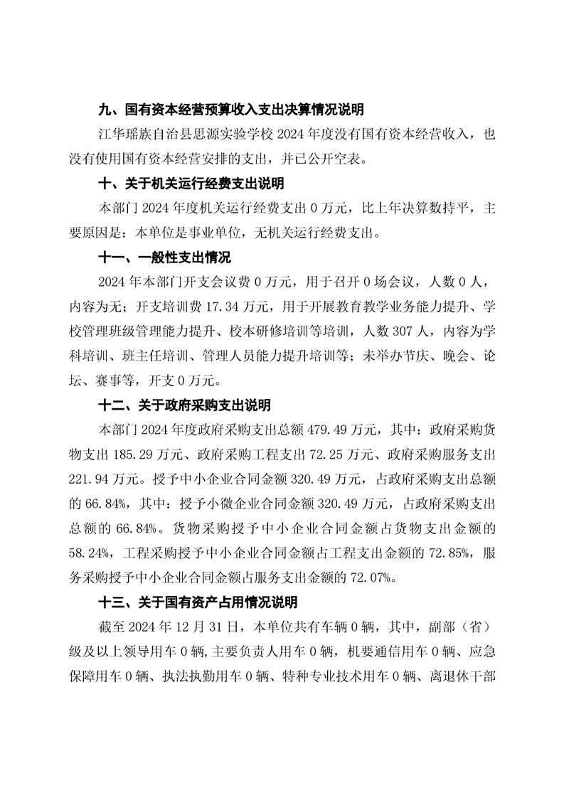 江华瑶族自治县思源实验学校024年度部门整体支出绩效自评报告