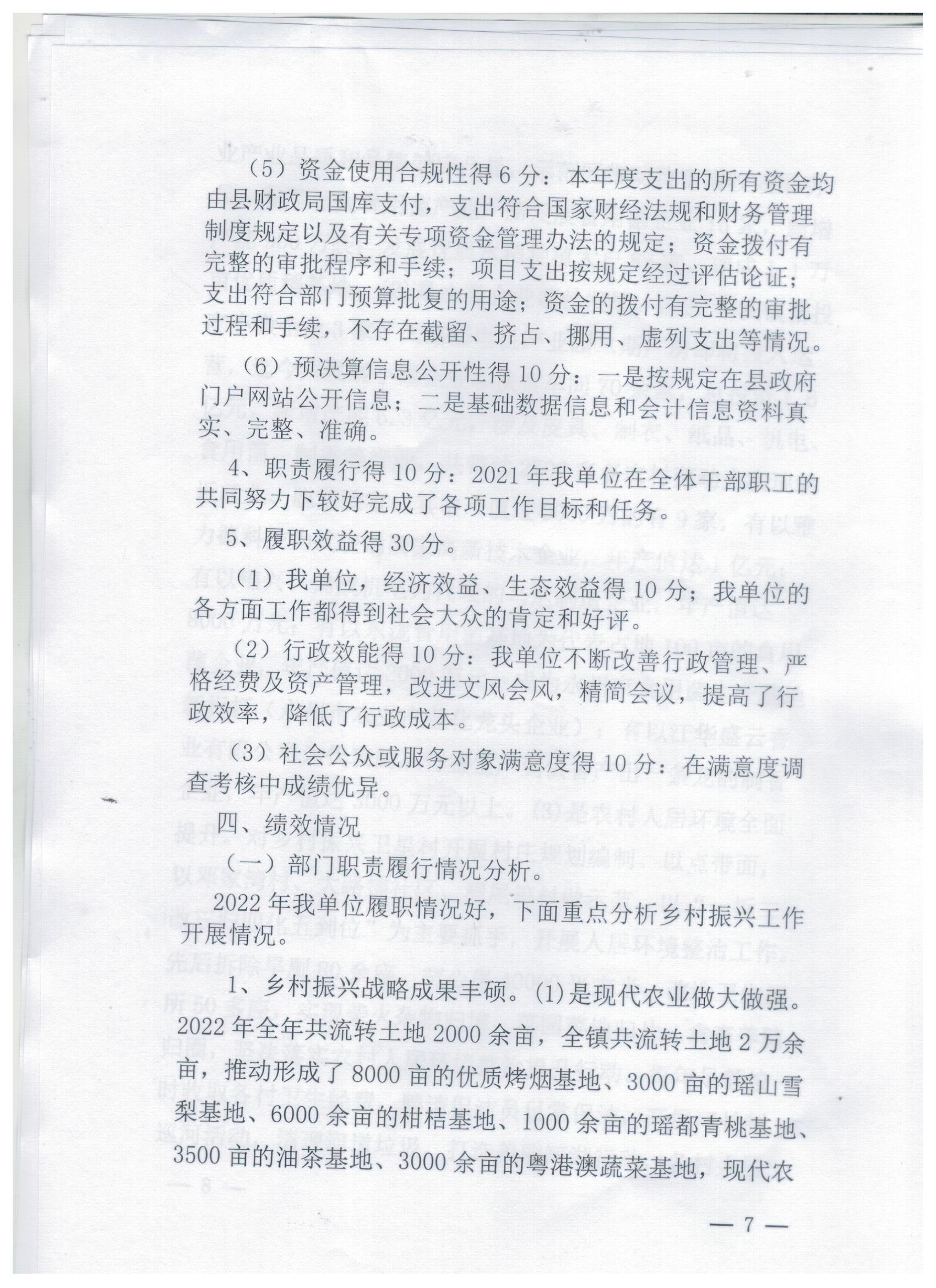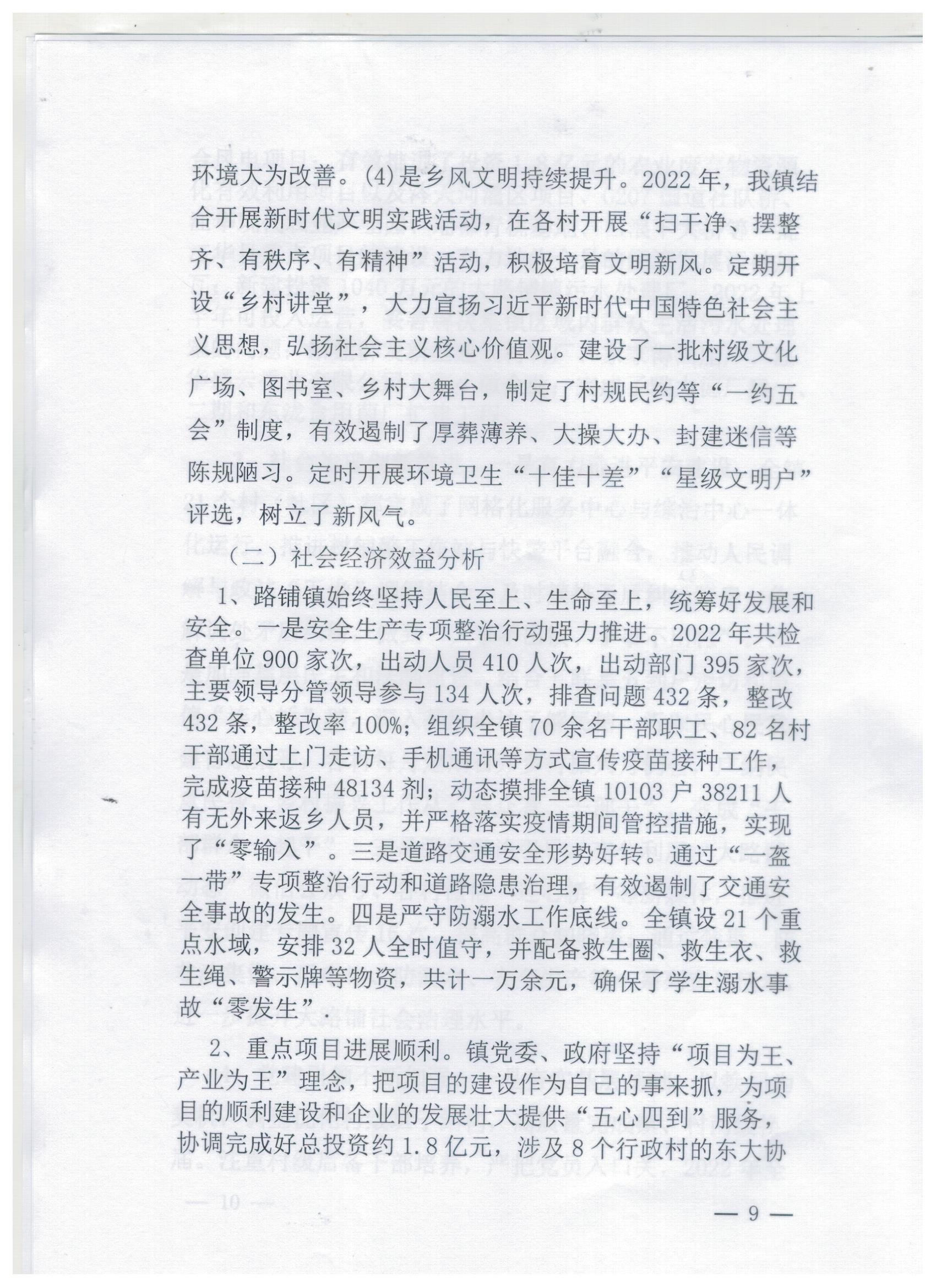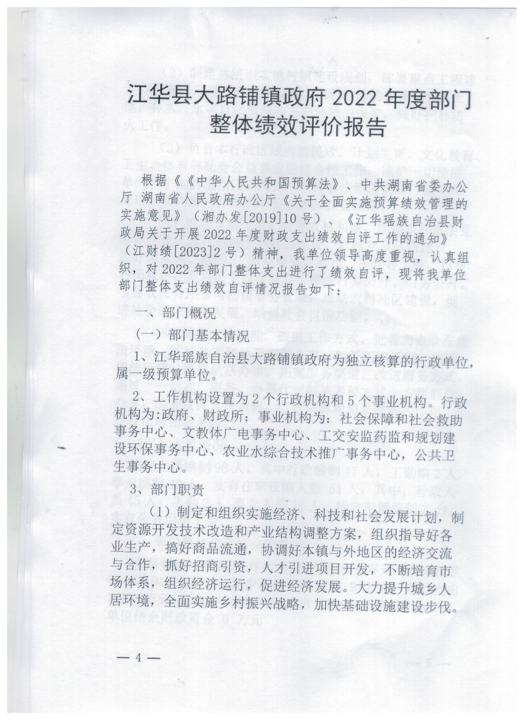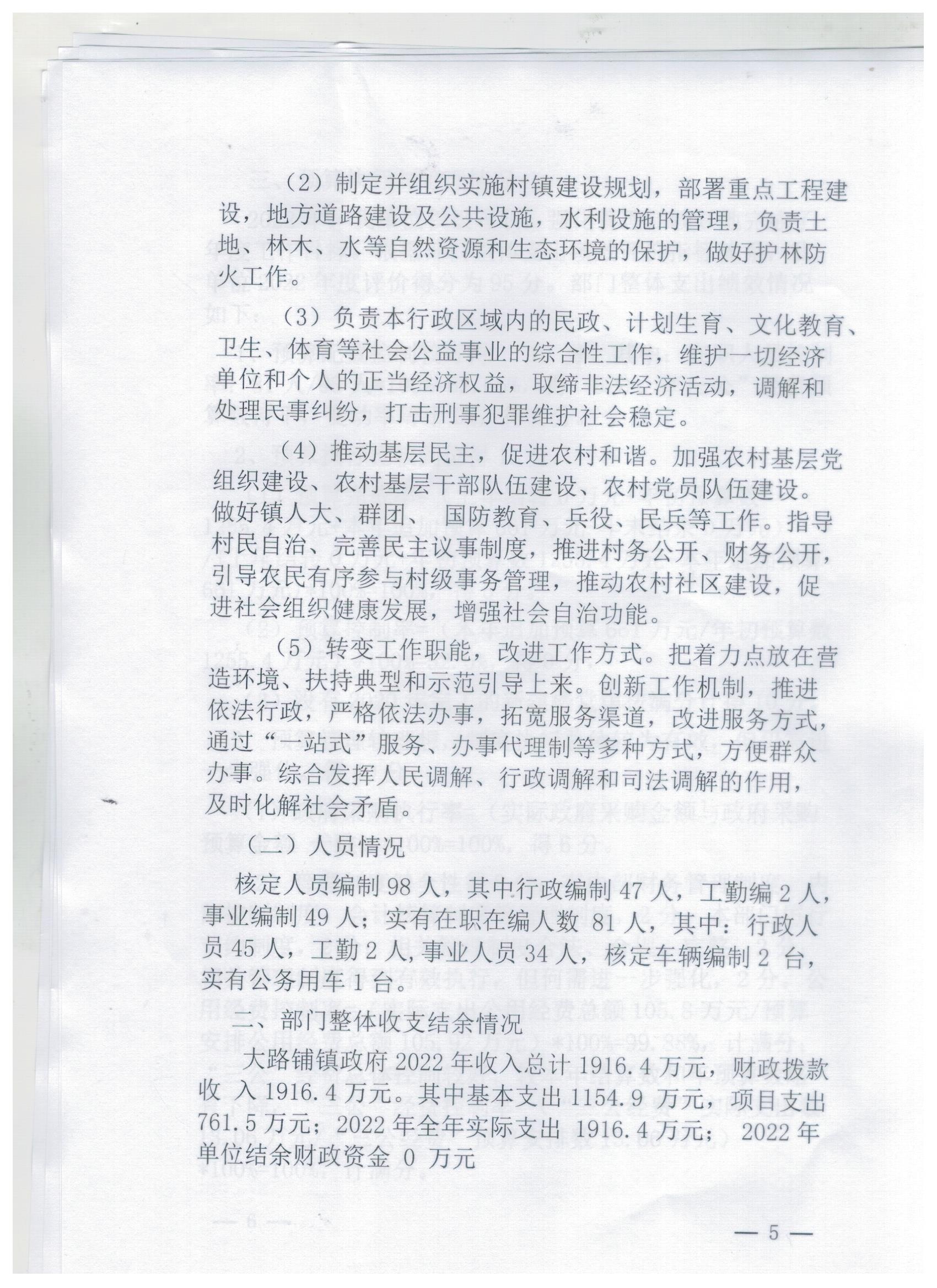 大路铺镇人民政府2022年度绩效评价报告