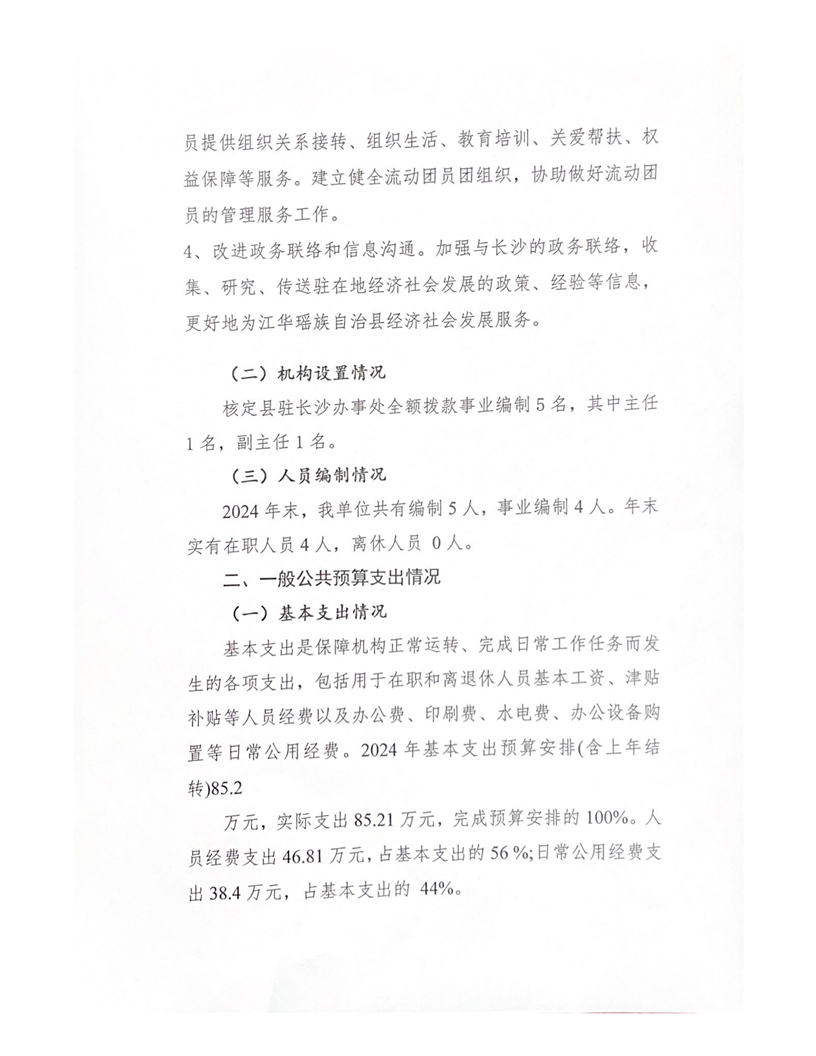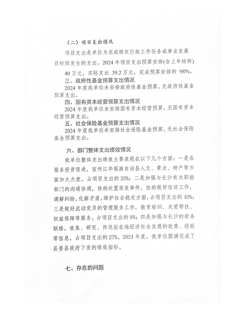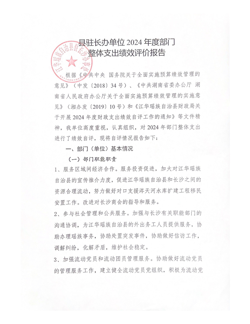 江华瑶族自治县驻长沙办事处2024年度部门整体支出绩效评价报告