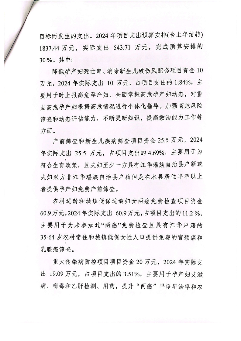 江华瑶族自治县妇幼保健计划生育服务中心2024年度部门整体支出绩效评价报告