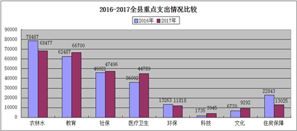 2016-2017年全县重点支出情况比较图(单位:万元)
