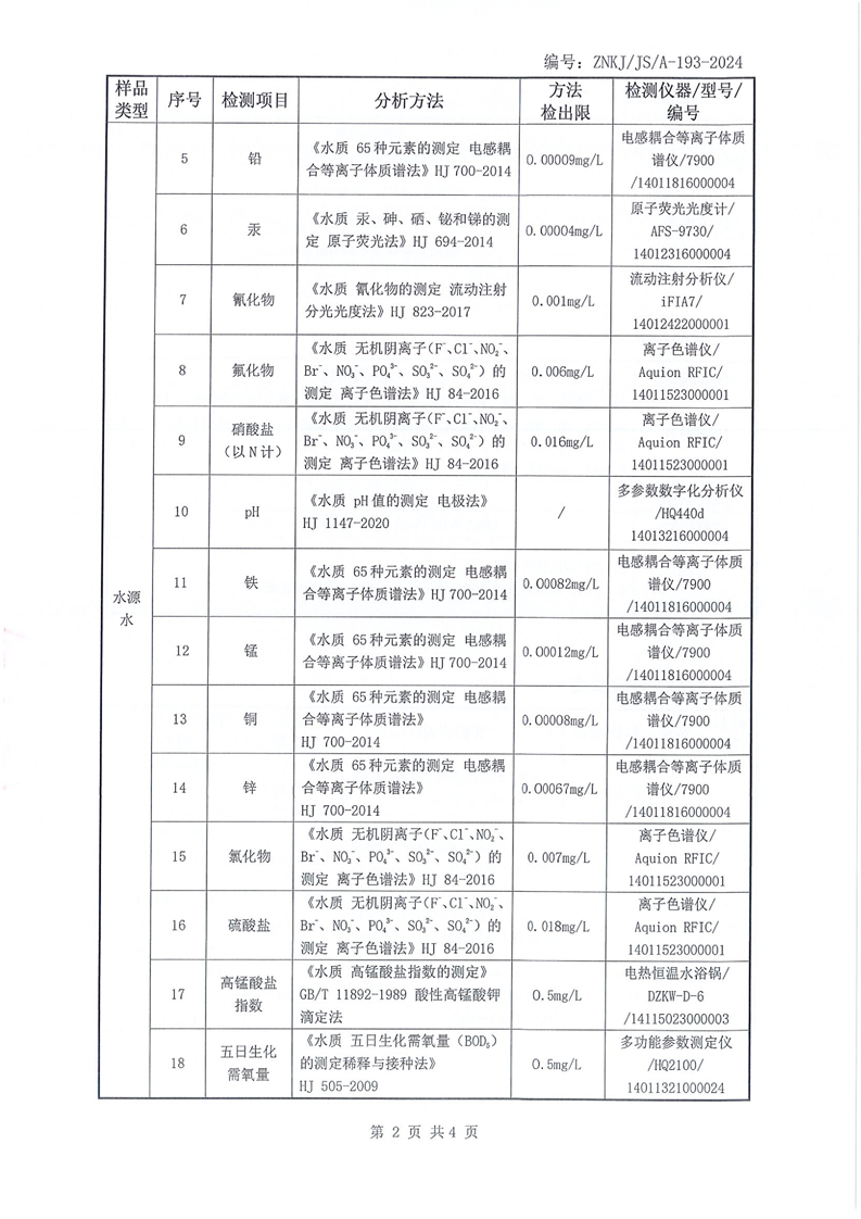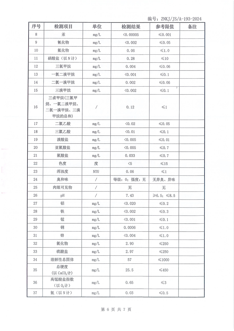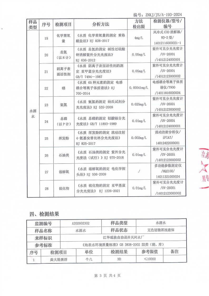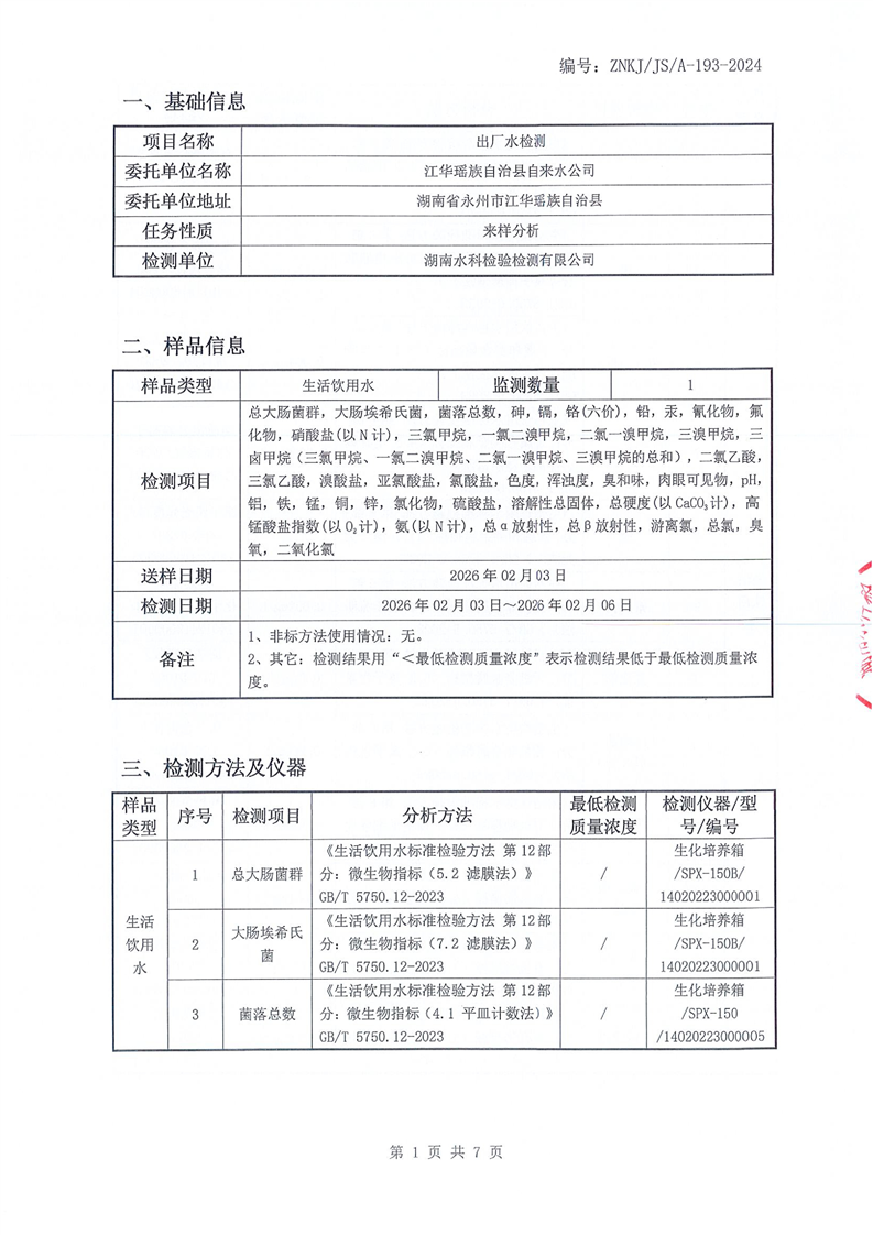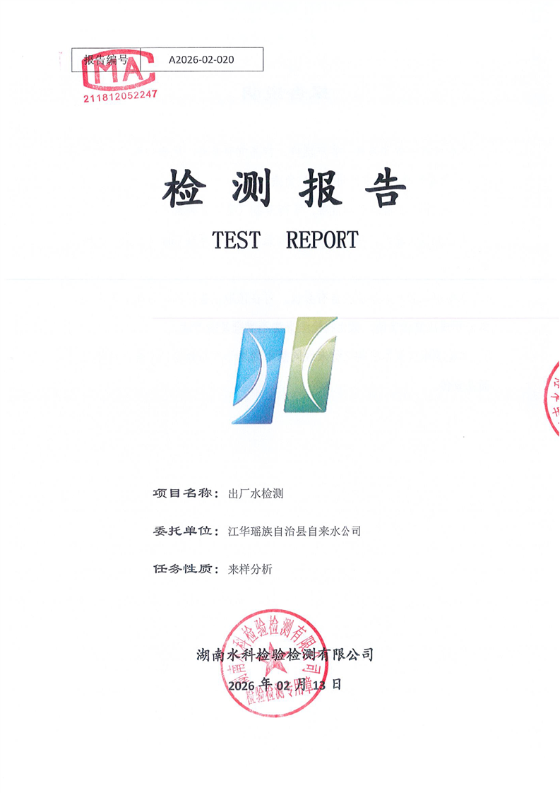 江华瑶族自治县自来水公司2026年2月份水质检测报告(43项)