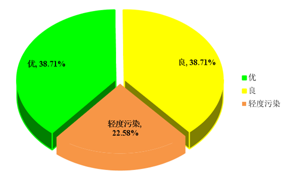 1月我县环境空气质量主要以优良天为主,一级优天数占38.71%,二级良天数占38.71%;出现了7天轻度污染天气,三级轻度污染天数占22.58%;主要超标污染物为PM2.5。1月份江华县县城环境空气质量综合指数为4.16,与去年12月份相比下降了12.05%,与去年同期相比(5.18)下降了19.69%;空气质量与去年同期和12月份相比变好了;1月份空气中最大污染物为PM2.5 。