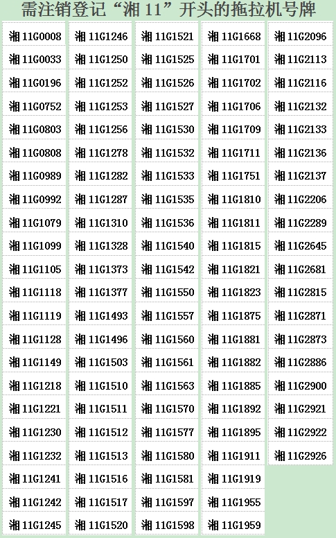 附件:需注销登记“湘11”开头的拖拉机号牌