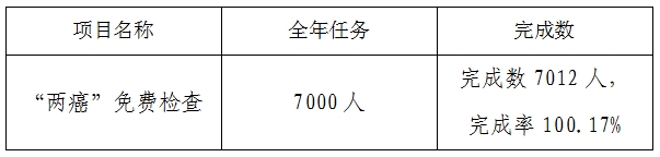 2020年为民办实事“两癌”免费检查项目完成情况公示表