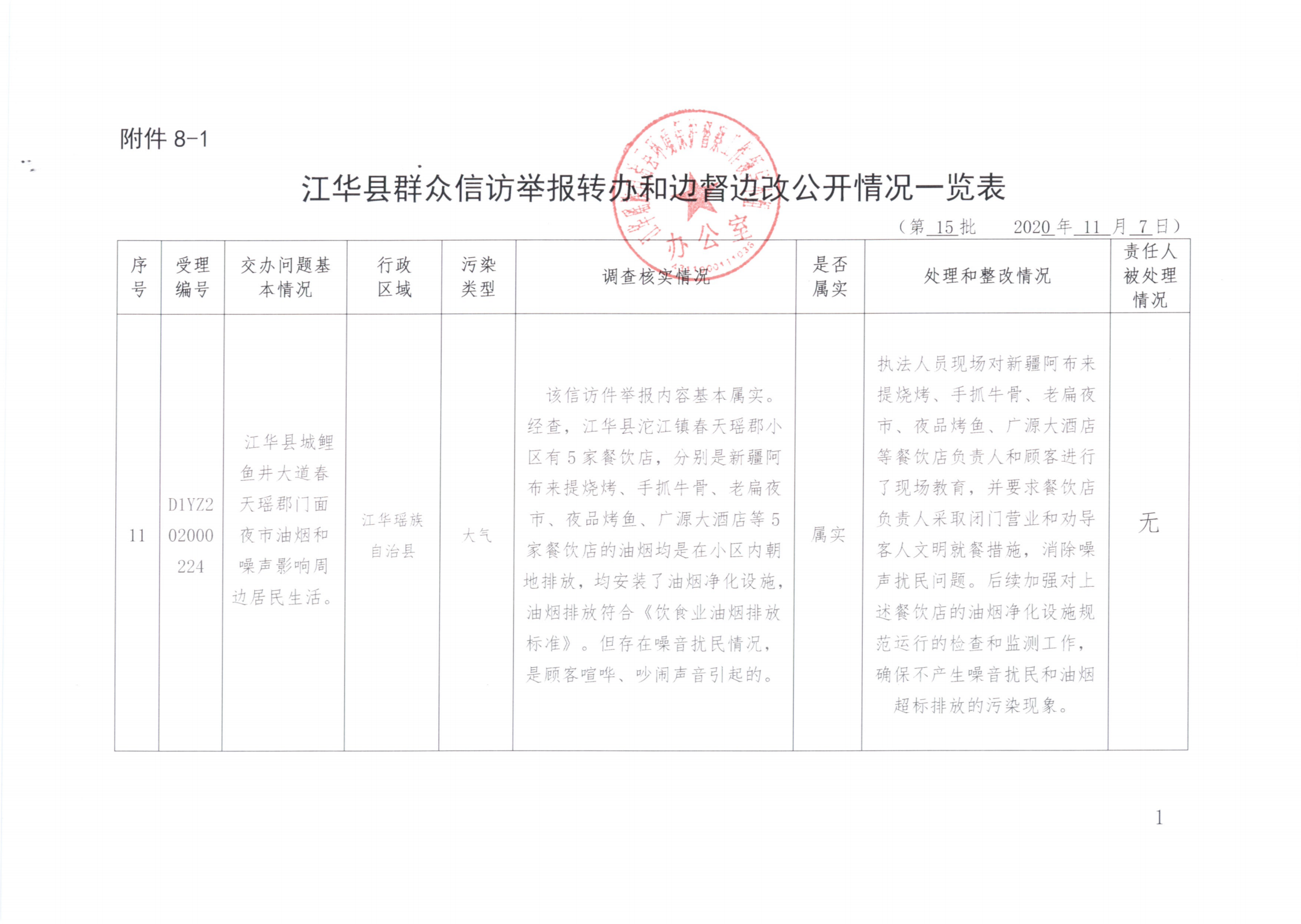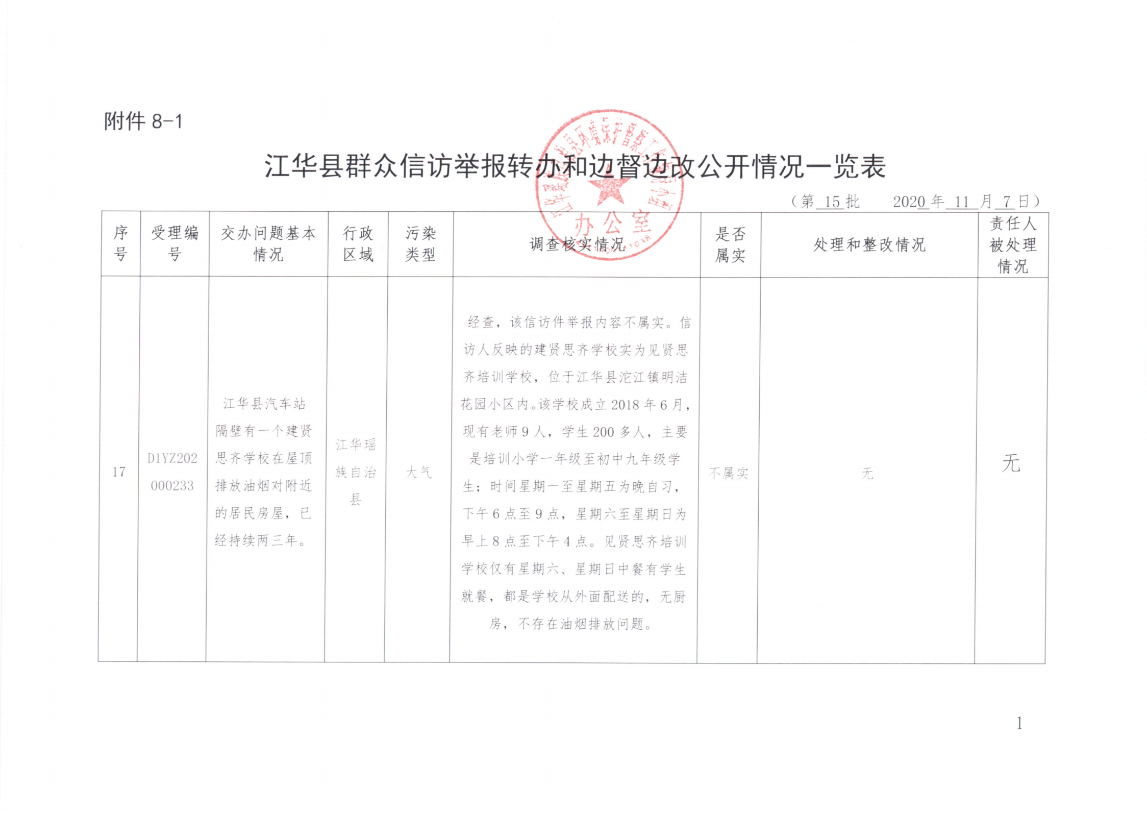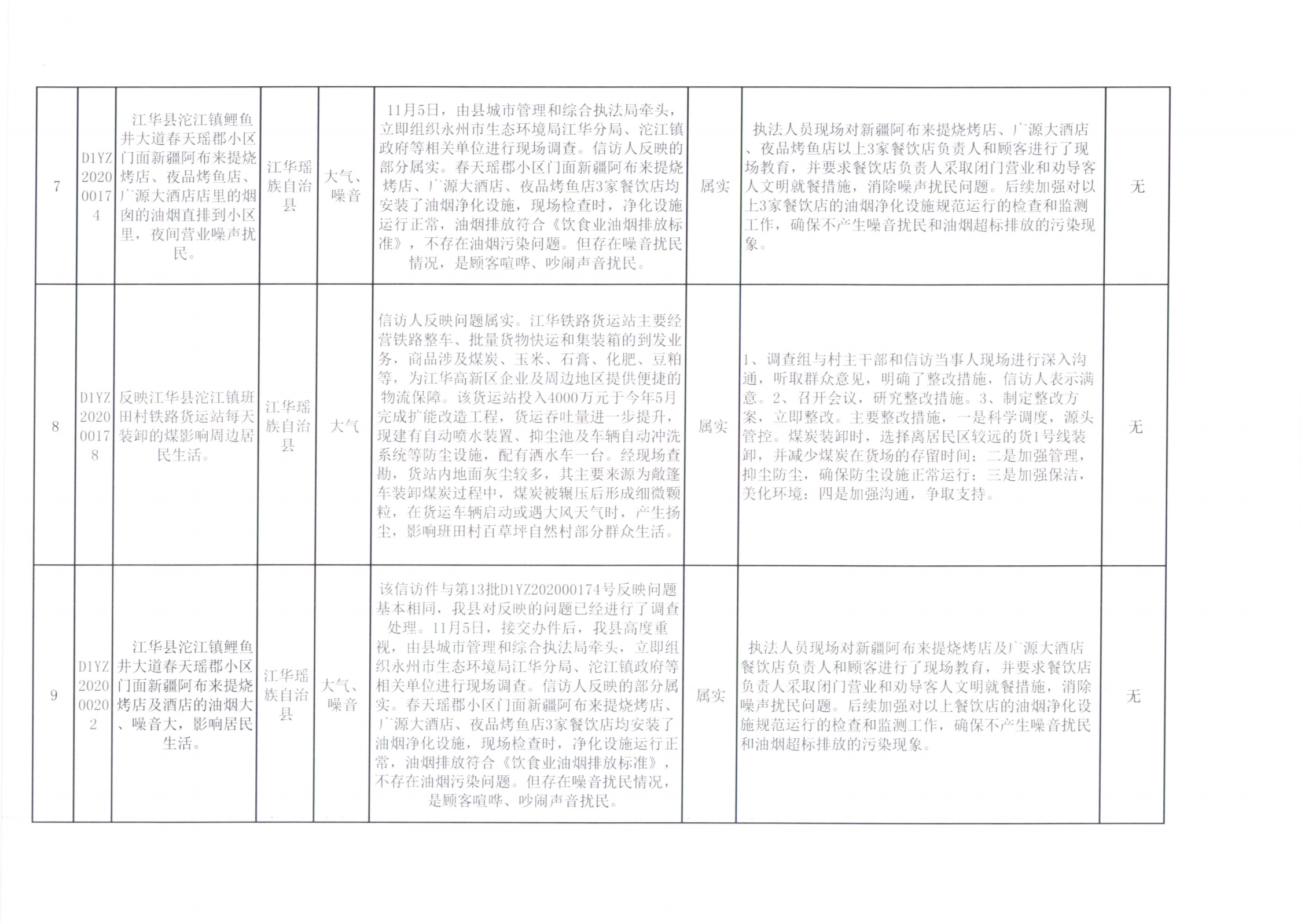 江华县群众信访举报转办和边督边改公开情况一览表