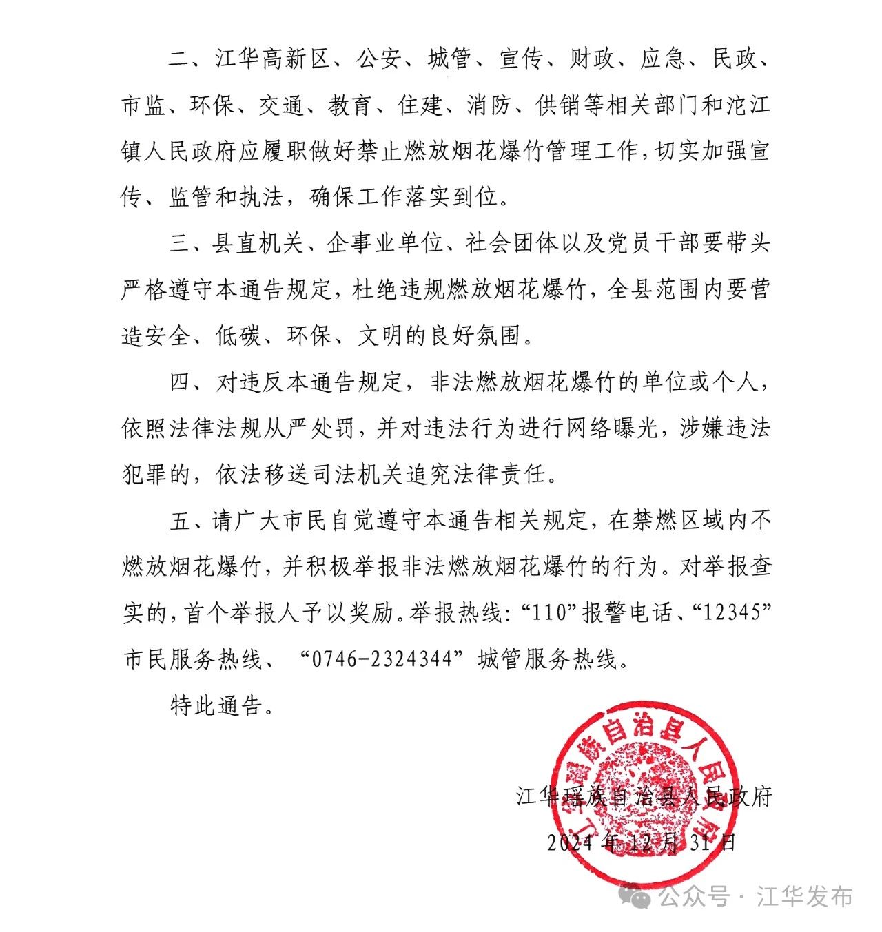 温馨提示 | 江华县城城区全面禁止燃放烟花爆竹!