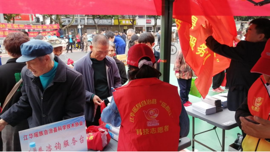 活动现场,身着“瑶都红”科技志愿者服装的科普员通过发放宣传手册、展板介绍、现场咨询等多种形式,向过往群众详细讲解日常工作生活中容易被忽视的安全问题以及如何防范灾害风险,遇到自然灾害时应如何开展自救,提升应急避险技能等科普知识。同时,指导广大群众开展注册“科普中国APP”信息员,关注“科普中国”“科普湖南”“江华科协”等科普微信公众号,对注册成功的用户赠送小礼品,并免费向现场群众赠送《健康百科》《科普法》等科普书籍,积极向群众普及防灾减灾,健康生活等科学知识。