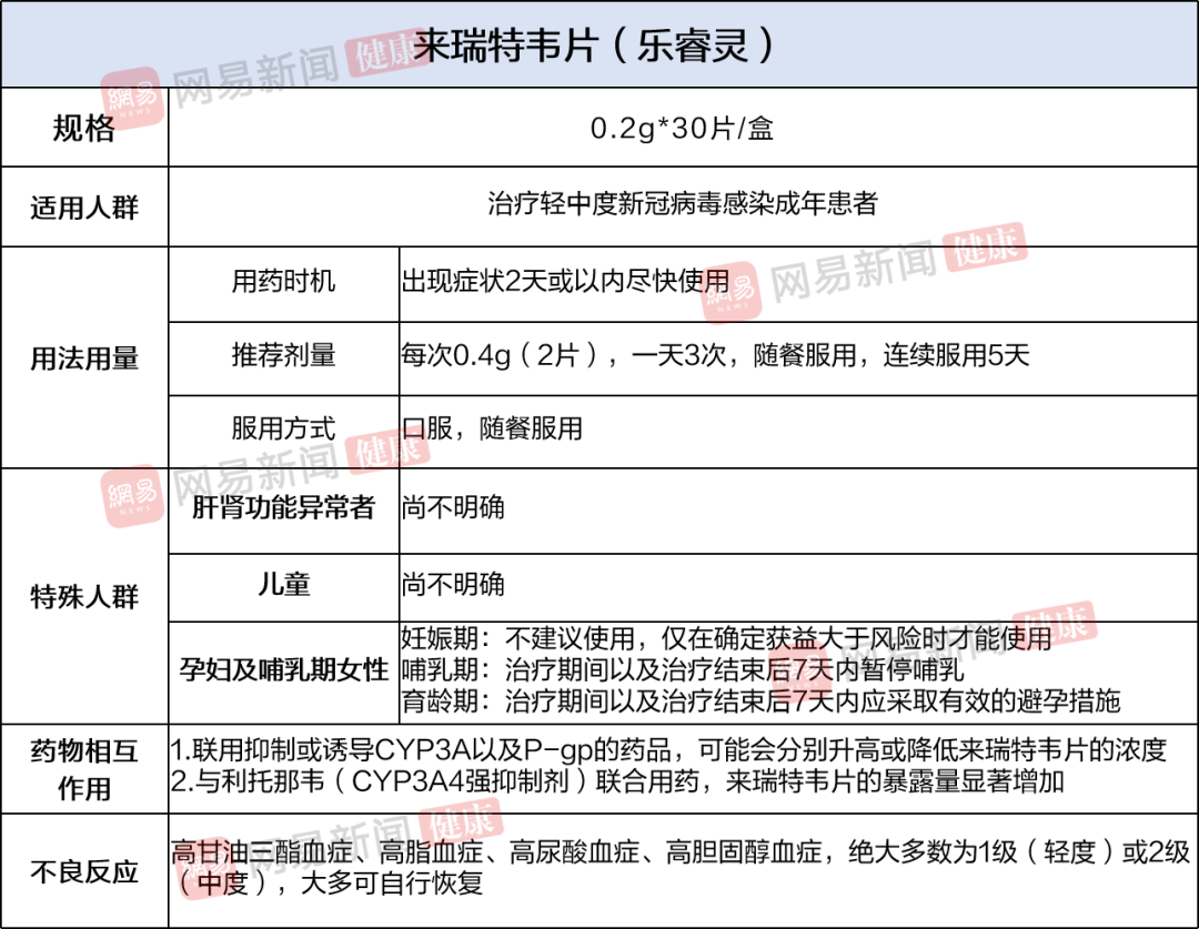 2023年3月21日,国家药品监督管理局根据《药品管理法》相关规定,按照药品特别审批程序,附条件批准1类创新药来瑞特韦片(商品名称:乐睿灵)上市。来瑞特韦片为口服小分子新冠病毒感染治疗药物,用于治疗轻中度新冠病毒感染的成年患者。