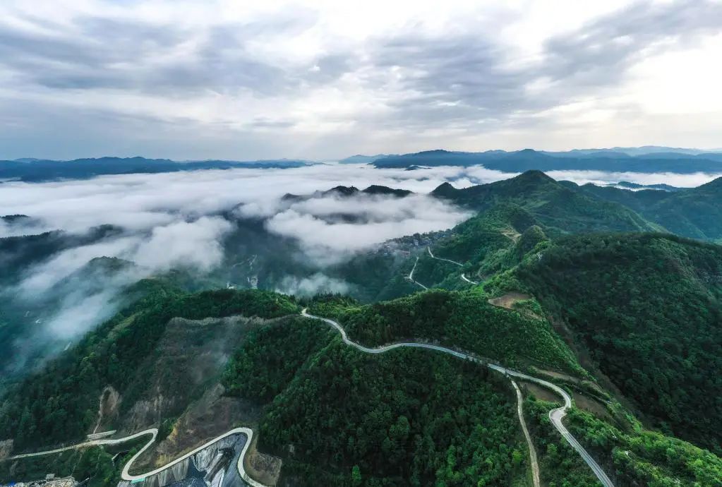 这是2023年4月26日在贵州省剑河县革东镇拍摄的苗寨云海景观(无人机照片)