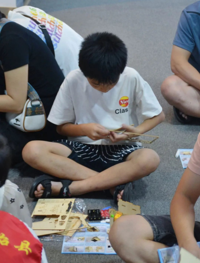 活动中家长和孩子们也积极参与智能感应垃圾桶的制作,通过外形搭建、电机操控等环节让大家提升了自己的动手能力与创新能力,制作出来的成果也让大家收获了满满的成就感。