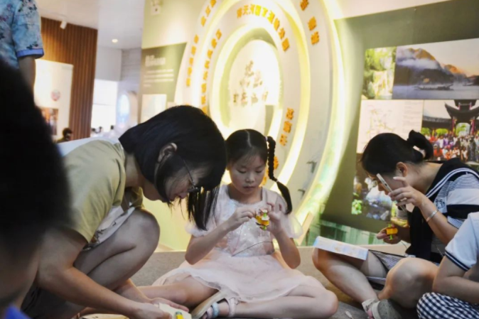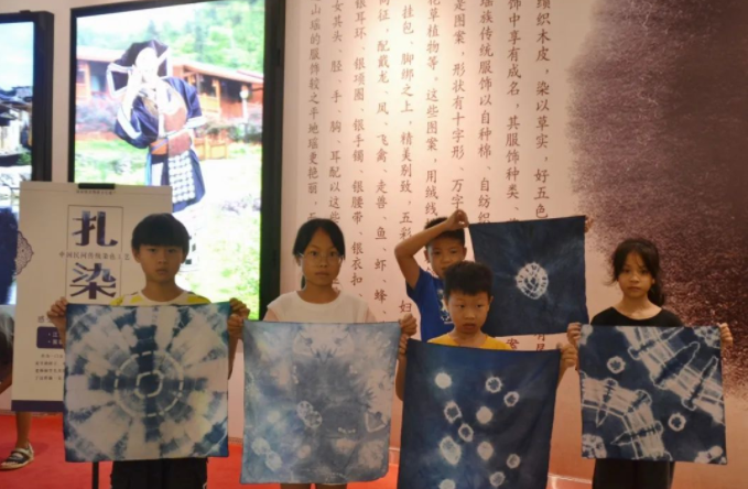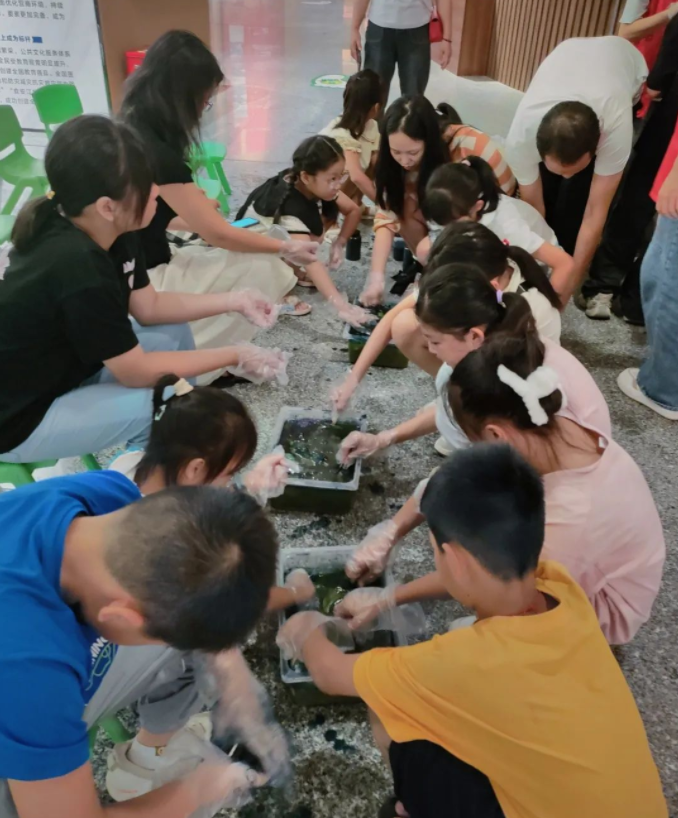 来自江华县职业中专的学生志愿者们则给大家带来了一堂生动的非遗传统工艺——扎染体验课。作为一门古老的技术,扎染用自己的方式诠释着东方美学。参与者们观察实验现象,沉浸式动手体验,人人创作出来的都是独一无二的作品。