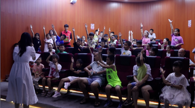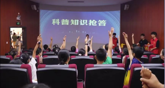 除此之外,在3D影厅内举行的科普知识竞答活动也如火如荼地进行。竞答内容围绕环境保护、航空航天等方面展开,孩子们既可以检验自己的科学知识水平又可以在这个过程中不断学习,同时还为他们提供了一个展示自己才华的舞台,更加激发了他们对科学的兴趣和热爱。