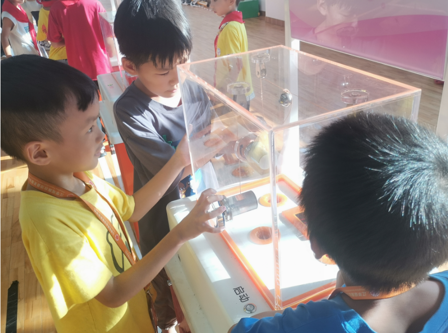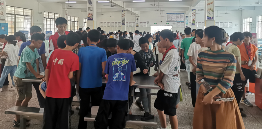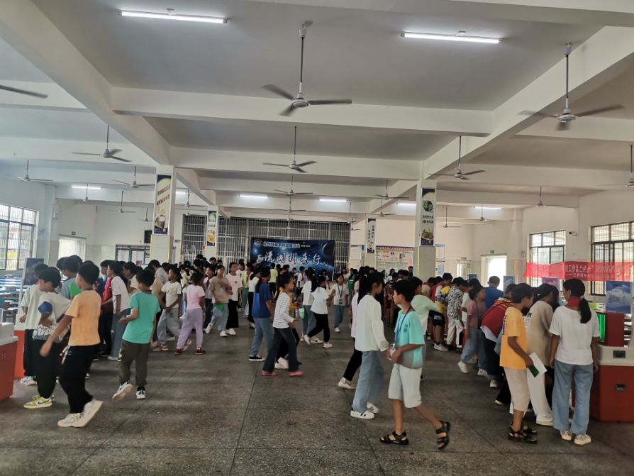 科普大篷车开进沱江镇芙蓉小学与小圩壮族乡中心小学,瞬间变成了百宝箱,“机械传动”、“能力测试”、“视觉体验”、“健康生活”、“力与数学”、“虚拟现实”等车载科普展品整齐摆放在校园内,一台台演示设备在科普志愿者的操作下现场展演,讲解员绘声绘色的讲解深深地吸引了孩子们的注意力,吸引了一双双好奇的眼睛,学生分批次体验科技展品,每一件展品都深受学生们的喜爱。