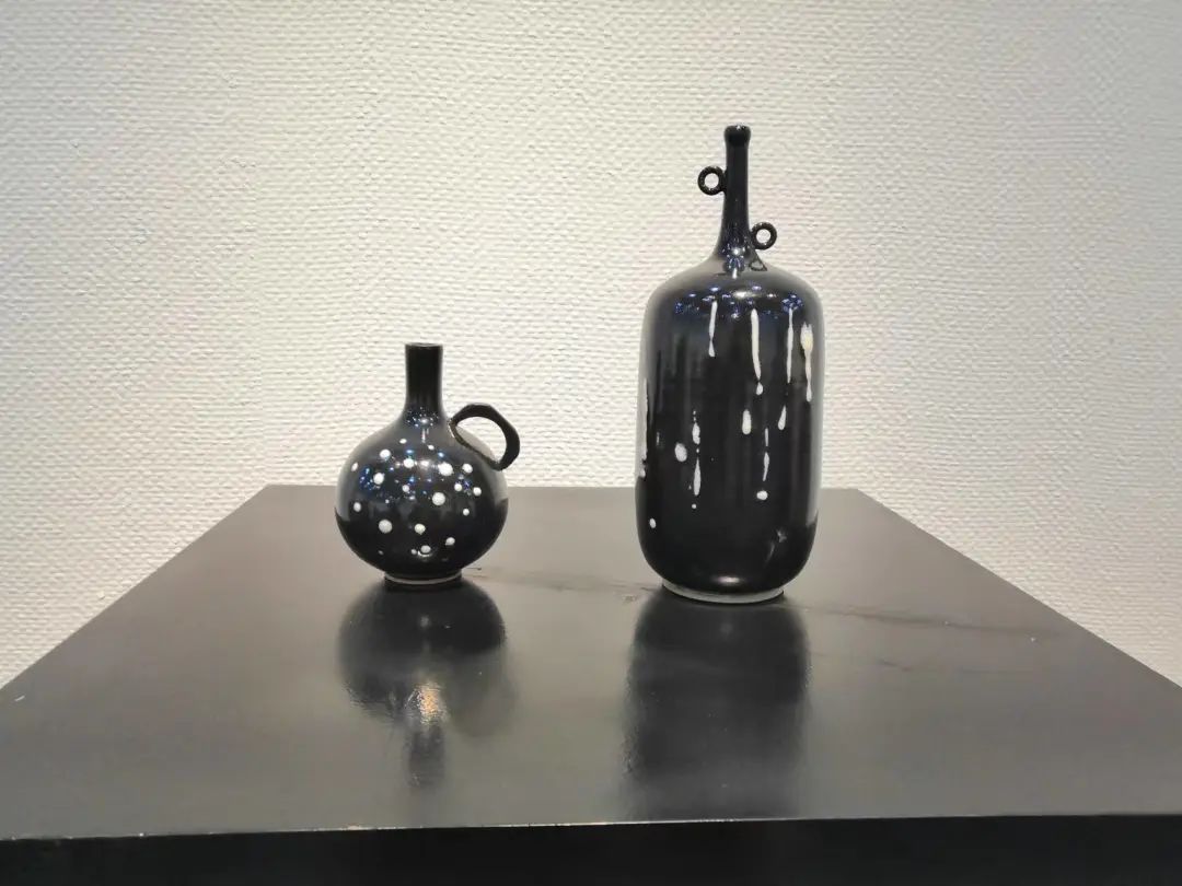 鲁山花瓷是唐代制瓷工匠为改进黑釉的单调而精心发明创造出来的一个特殊品种,其斑/面釉则是另外一种与普通黑釉完全不同的釉。斑釉在烧制过程中由于气泡溢出、釉的流动及固化后,在釉层中形成纳米级小液滴对光的反射,产生绚丽多彩而又复杂多变的乳白、蓝、褐色色调和流纹。