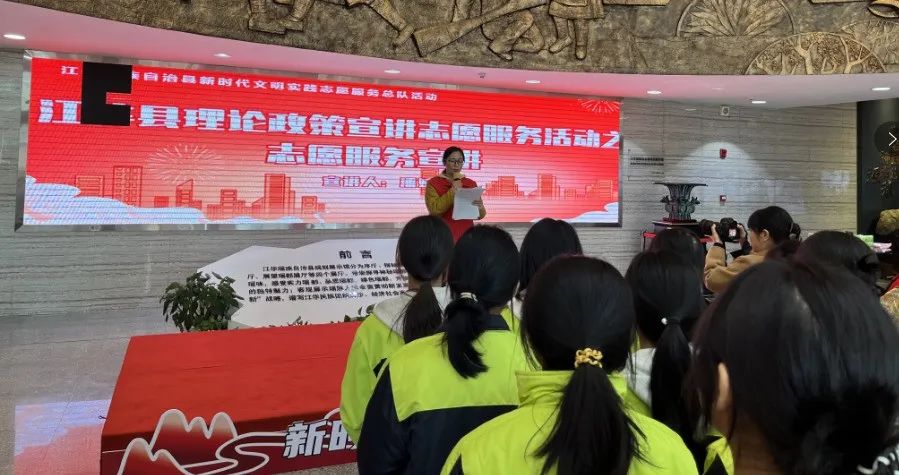 活动由江华瑶族自治县新时代文明实践中心、实践志愿服务总队主办,县科协、县司法局等4个单位协办,县规划展示馆承办。12 支“瑶都红”志愿服务队分管领导和专干、县新时代文明实践中心工作人员、职业中专学生、社区居民参加了本次活动。