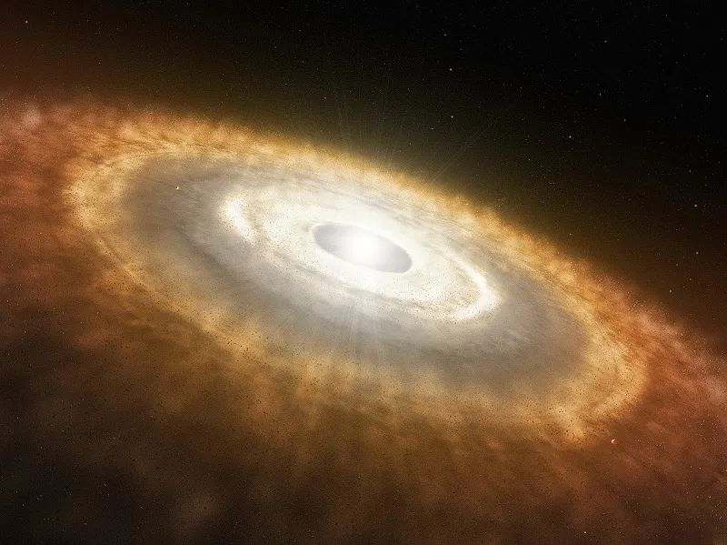 婴儿恒星周围由行星形成气体和尘埃组成的原行星盘(艺术图)。