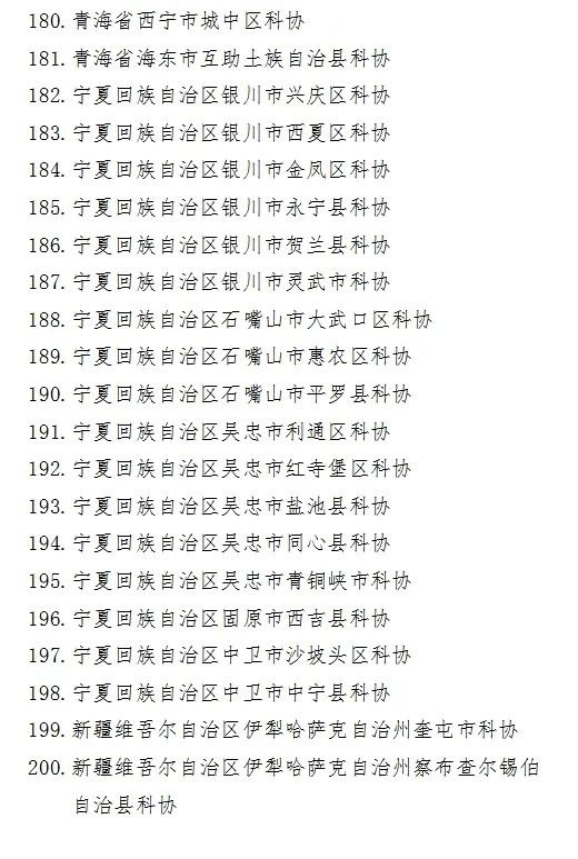各省、自治区、直辖市科协,新疆生产建设兵团科协: