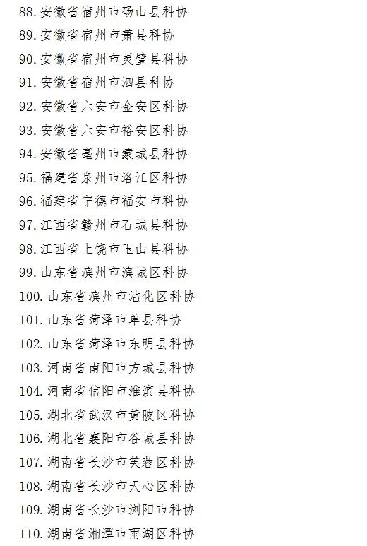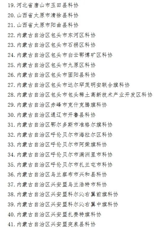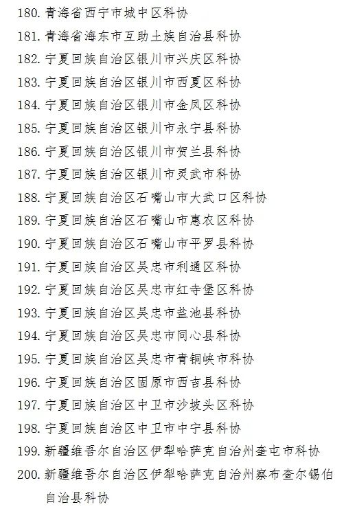 为表扬先进、宣传典型,按照2023年科普中国信息员传播量、月活量、地方科协管理员账号开通比例、平均发稿量、平均浏览量等客观数据,并考虑省域地区平衡,中国科协对北京市科协等10家省级科协、河北省唐山市科协等80家地市级科协、北京市朝阳区科协等200家区县级科协等科普中国组织单位进行工作表扬。