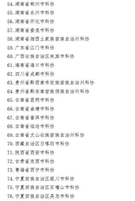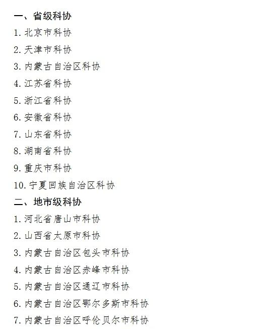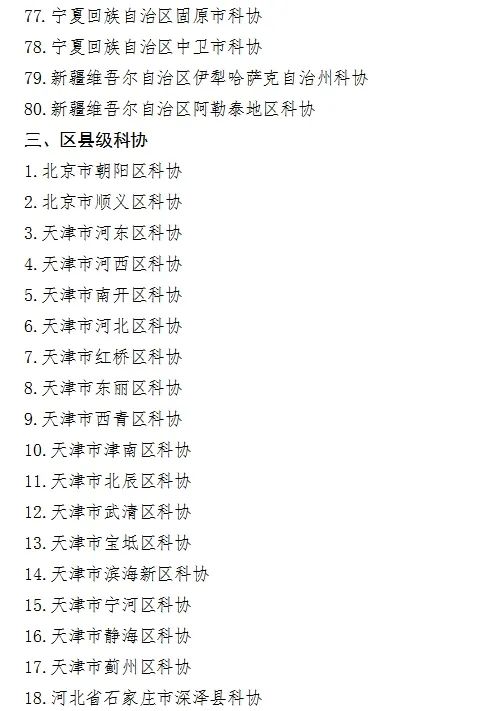 各省、自治区、直辖市科协,新疆生产建设兵团科协: