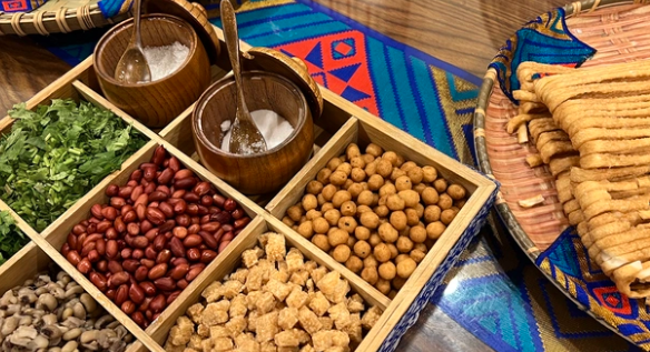 瑶族油茶,那口感,简直绝了!初入嘴时,醇厚清苦中带着微辣和涩味,仿佛在诉说着瑶族人民的坚韧与不屈;过后则是甘醇鲜香,回甘回甜,令人回味无穷。再配上米花、花生、黄豆等多种佐料,油茶的口感更是丰富多样,让人欲罢不能!