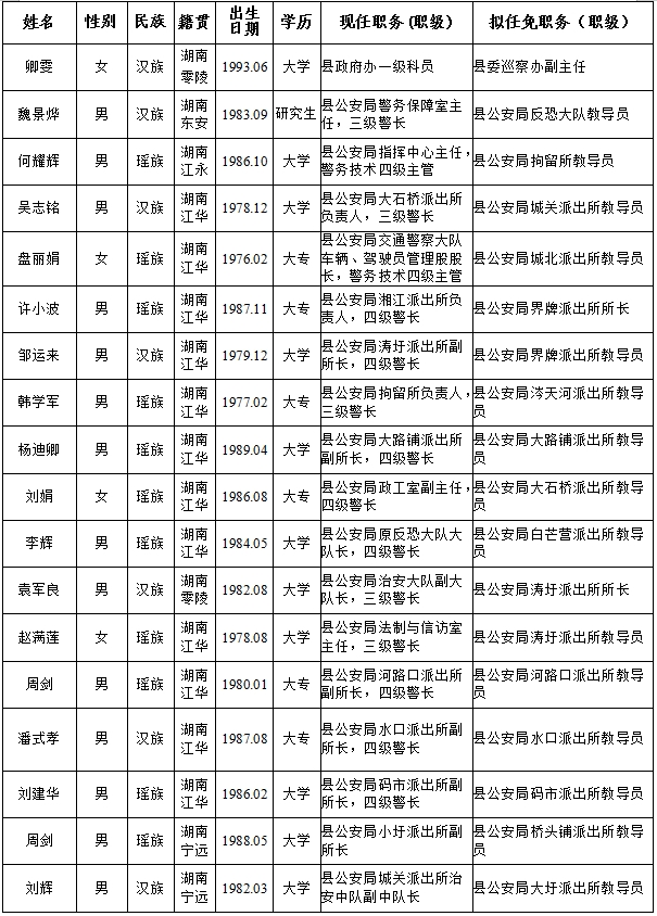 为加强对干部选拔工作的监督,提高识别和任用干部的准确程度,现对县委常委会议研究决定的下列25名拟任职(提名)人选进行任前公示: