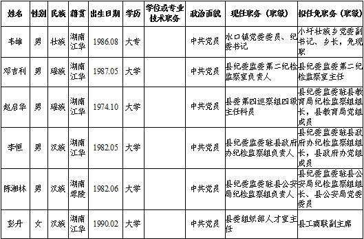 为了加强对干部选拔工作的监督,提高识别和任用干部的准确程度,现对县委常委会议研究决定的下列 6名拟任职(提名)人选进行任前公示: